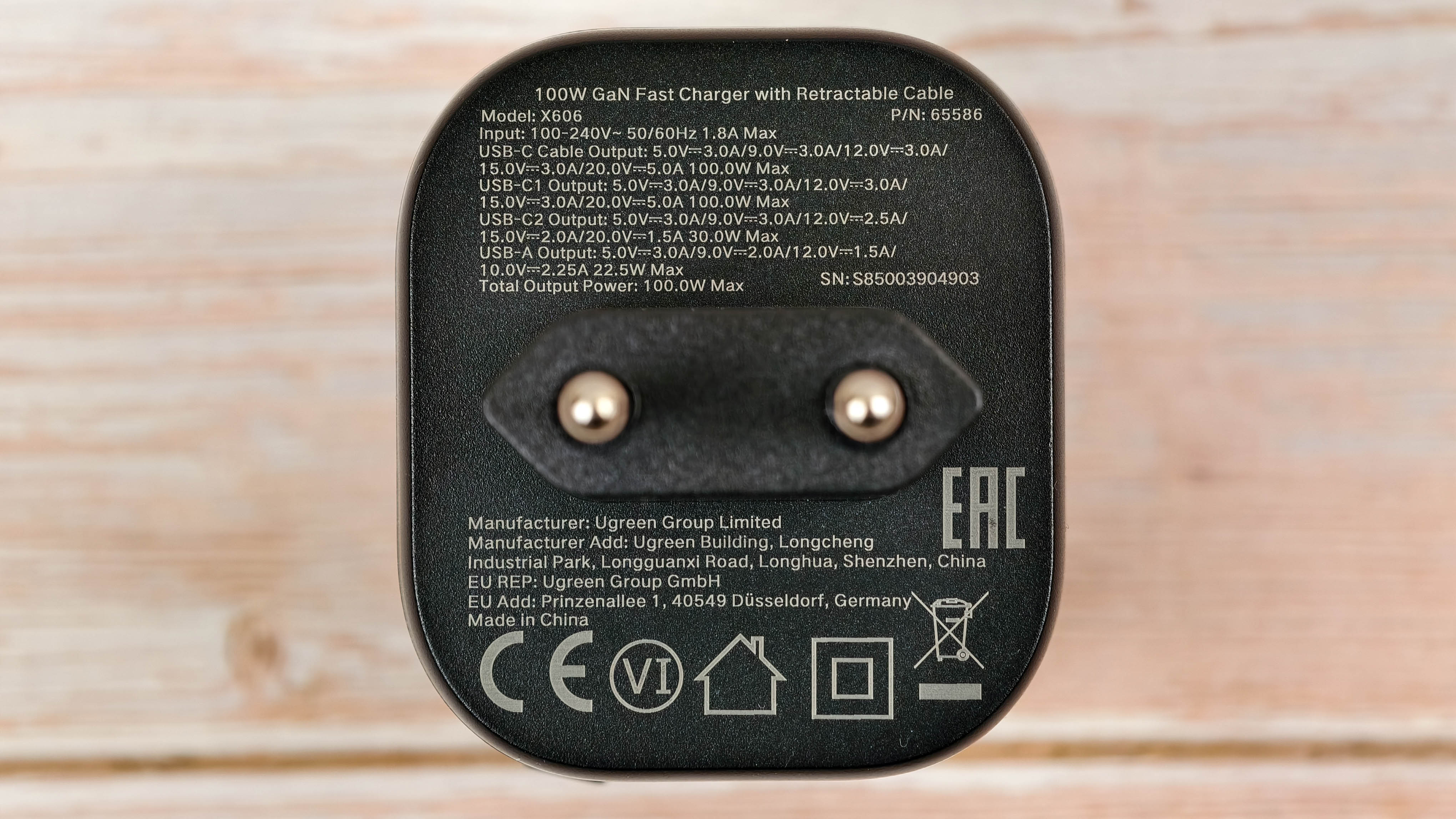 | Название модели | 100 Вт GaN быстрая зарядка с выдвижным кабелем (модельный номер X606) |