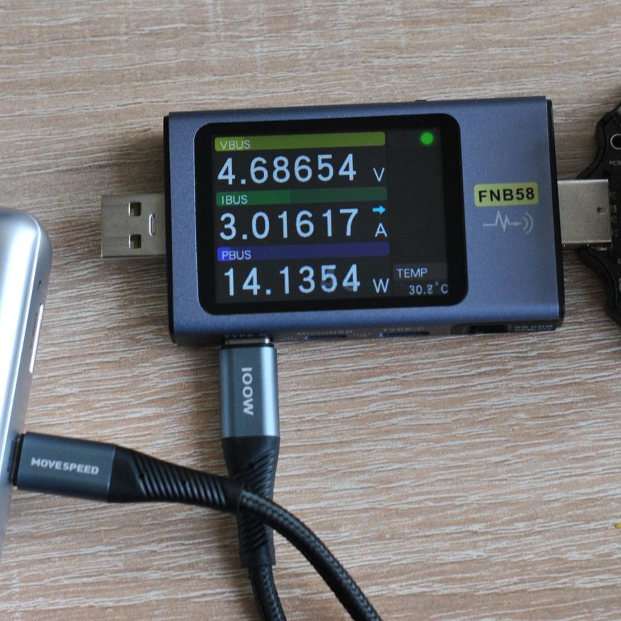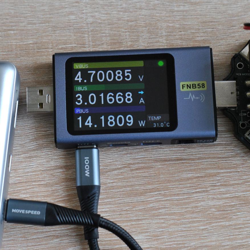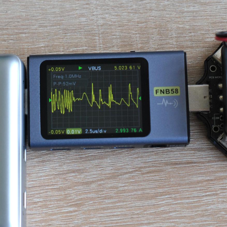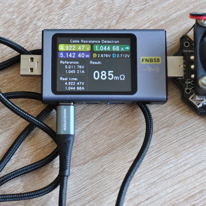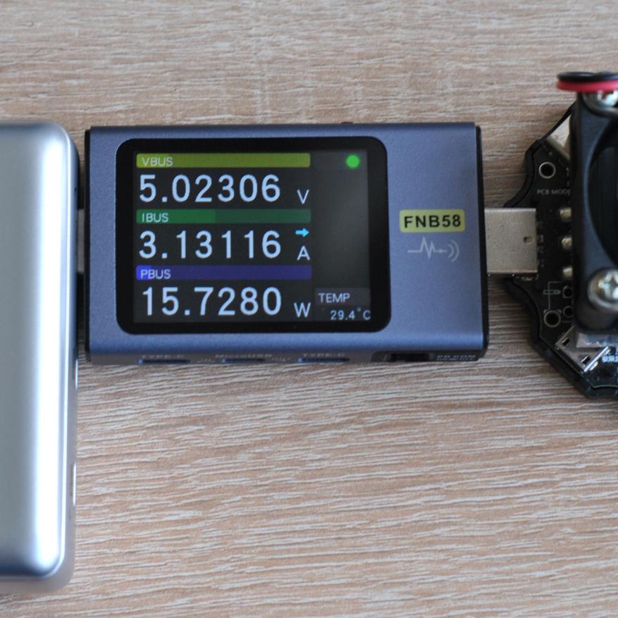 Проверим возможности всех трех портов с помощью точного USB тестера и регулируемой нагрузки. Для каждого порта посмотрим тест протоколов быстрой зарядки, максимальный ток по 5 В и пульсации на максимальном токе. Лоя портов USB-C задействуем комплектный кабель.