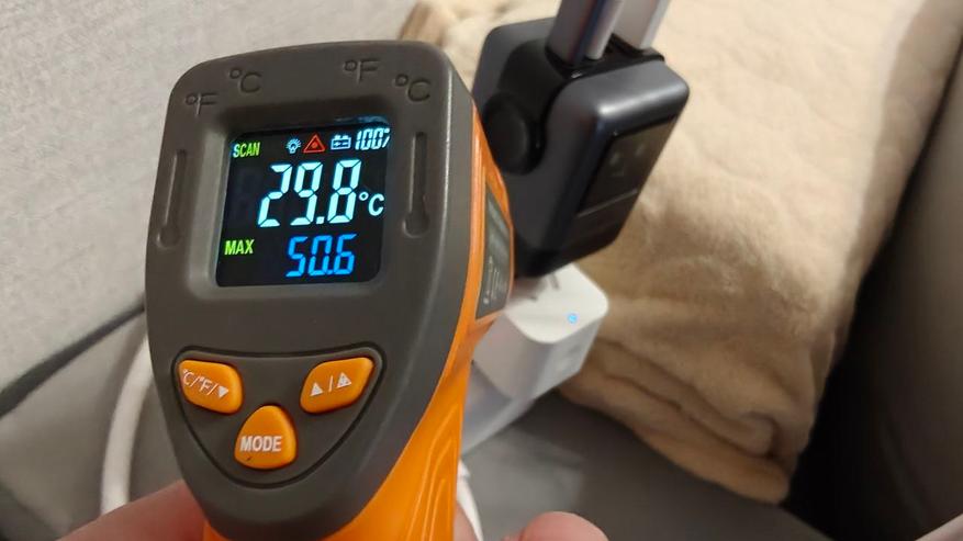 После длительной зарядки на полной мощности устройство не нагрелось практически совсем. Температура не выше 51С, что вполне нормально для подобных устройств. При этом нет ни писка, ни гула.
