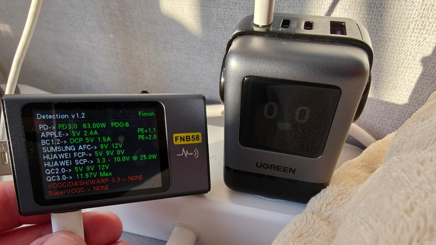 Например, такой мысленный эксперимент. Я подключаю к этой зарядке обычный старенький USB 2.0 хаб из 2005 года (или более современный USB 3.0 хаб) в порт USB type A (или через адаптер в порт USB type C). В один из портов этого хаба — включаю заряжаться, скажем, весьма дорогой измерительный прибор, который заряжается по USB только на 5 вольт. А в соседний порт хаба — смартфон с каким-нибудь протоколом быстрой зарядки, который поднимает напряжение до 9 или 20 вольт. Что будет? Точно ли повышенное напряжение не пойдёт на устройство, которое к этому не готово?