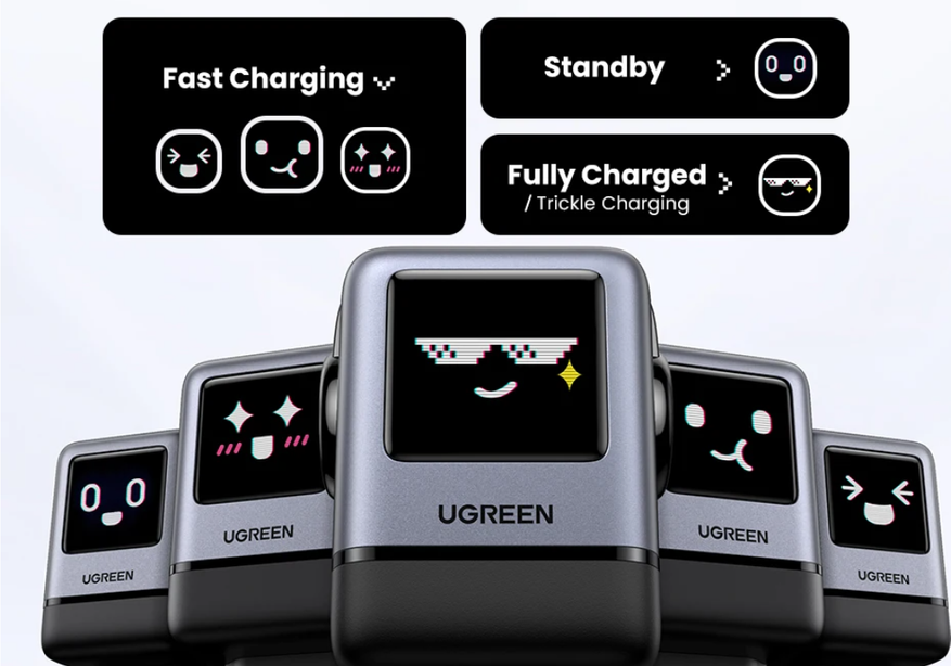 Компания Ugreen, известная как производитель качественных зарядок и кабелей, выпустила новинку среди быстрых зарядных устройств с технологией GaN, которая способна заряжать абсолютно любое устройство. Мощность этого зарядного устройства достигает 100 Вт, и она поддерживает современные протоколы быстрой зарядки. В дополнение к богатому набору разъемов она украшена дизайном в виде милого робота с приветливыми эмоциями на дисплее.