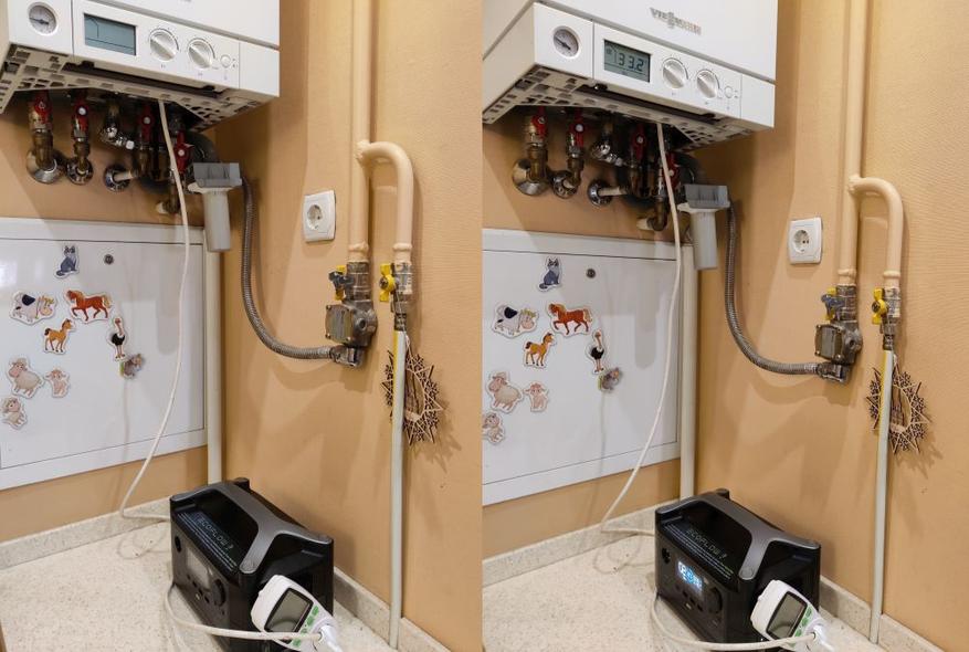 В первую очередь я зашел на кухню, дабы проверить «отношения» EcoFlow RIVER с 2-контурным газовым котлом, который у меня является основным источником отопления. На входе в помещение есть стабилизатор на 15 кВт и прошлой зимой была такая ситуация. Старенький дом на десять квартир, за окном -15, а в вечернее время начинаются перебои и отключения света. На стабилизаторе показывает около 280 В и отключение по причине превышения. Утром при выходе на работу в щитовой вижу сотрудников ЖЕК-а, что-то там ремонтируют, про себя порадовался, что так оперативно проблему устраняют. В обед все было хорошо, свет стабильный. К вечеру снова перебои и на приборе 120-130 В. Утром та же картина с ЖЕК-ом, я как-то особо не напрягся, ведь ошибаться может каждый, вроде, отремонтировали и хорошо.