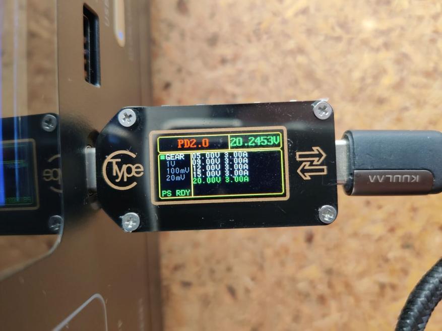 Присоединил электронную нагрузку триггер к порту type-c, на выходе получил 20В.