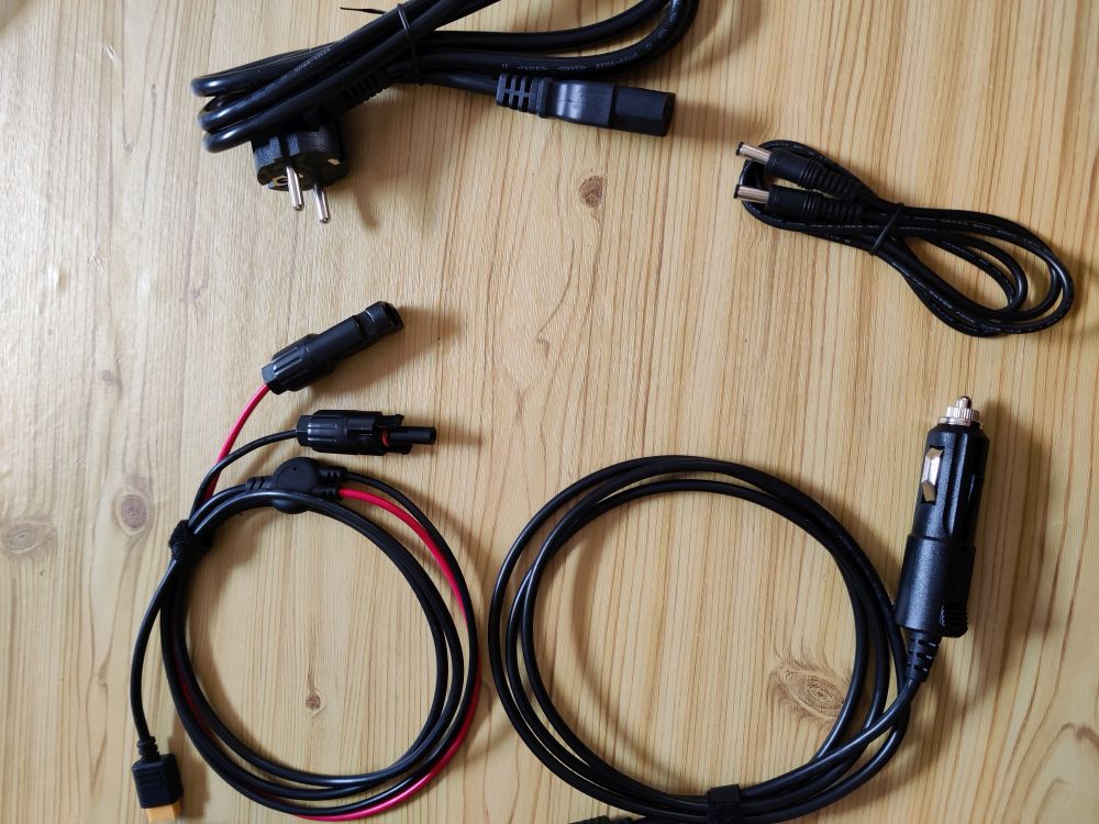 Стандартный сетевой кабель, чтобы заряжать, кабель для питания EcoFlow RIVER от автоприкуривателя, кабель под 12 В и для возможности зарядить от солнечных панелей.
