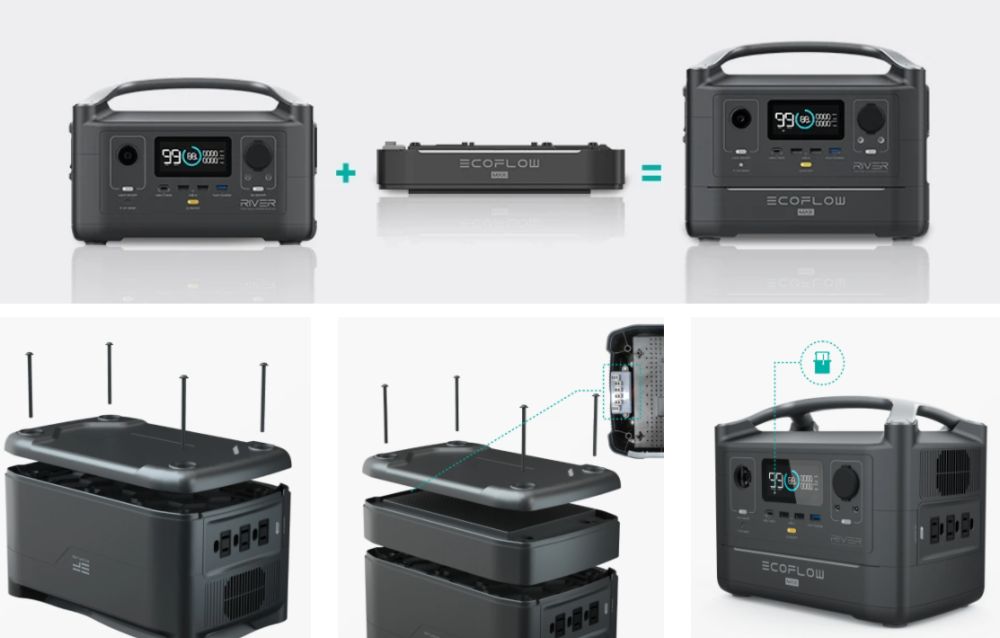 Ну или при потребности приобрести батарейный блок и методом простейших манипуляций вдвое нарастить емкость EcoFlow RIVER.