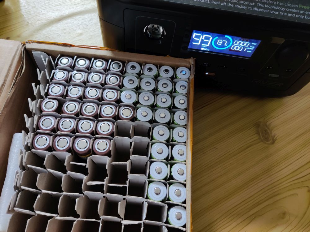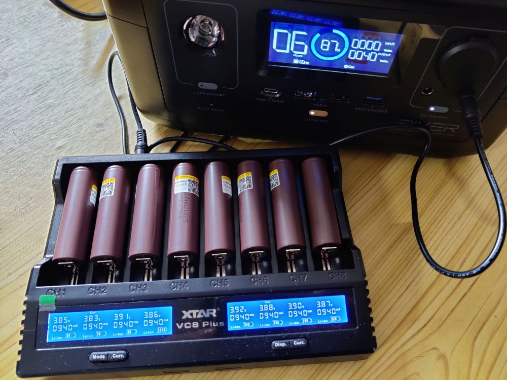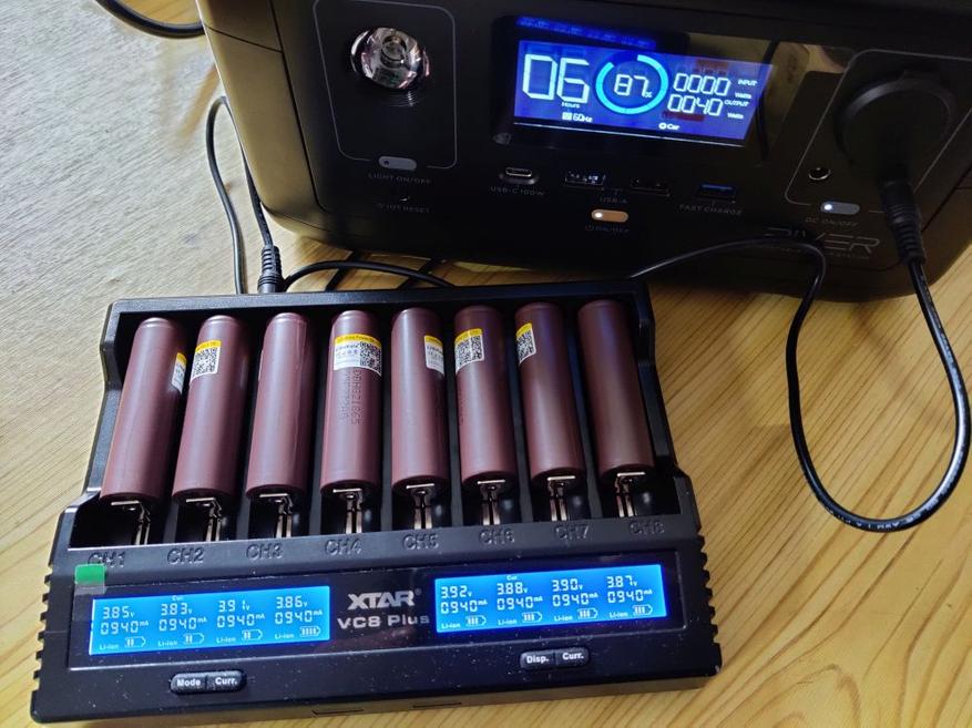 Если нужно, могу достать комплектный кабель и поставить заряжаться от EcoFlow RIVER одновременно восемь элементов.