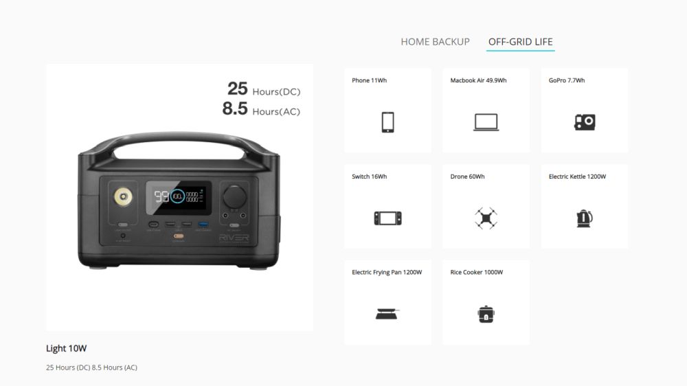 На рекламных фото сей зарядной станции можно увидеть много вариантов применения EcoFlow RIVER как дома, так и вне его пределов. Это и функционирование холодильных устройств, и осветительных приборов, проекторов, дронов и т.п.