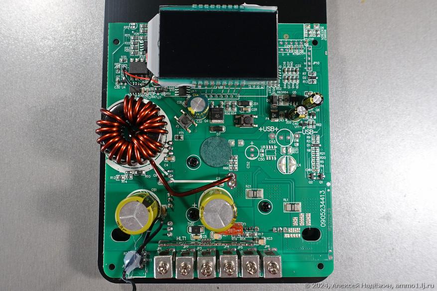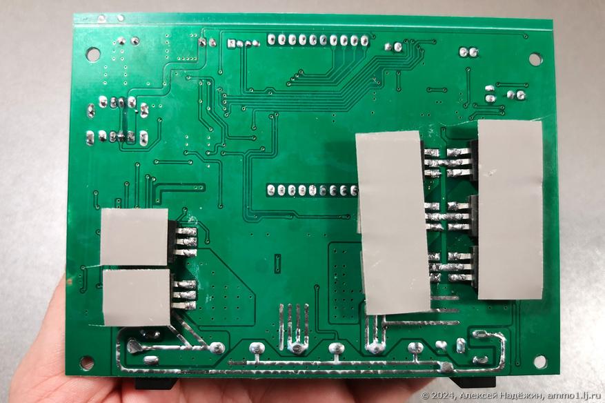 С обратной стороны платы только мощные полевые транзисторы с термопрокладками, передающими тепло на металлическую пластину сзади корпуса.