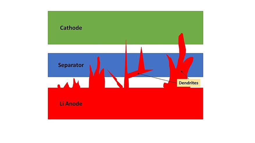 Инженеры называют этот процесс «плэйтингом» (metallization/plating). Самое плохое, что металлический литий растет не ровным гладким слоем, а хаотичными кристаллическими иглами, похожими на мох или деревья. Это и есть печально известные дендриты. С каждым циклом зарядки в стрессовых условиях эти иглы становятся длиннее и острее. В один момент такая игла протыкает нежный полимерный сепаратор и замыкает анод на катод.