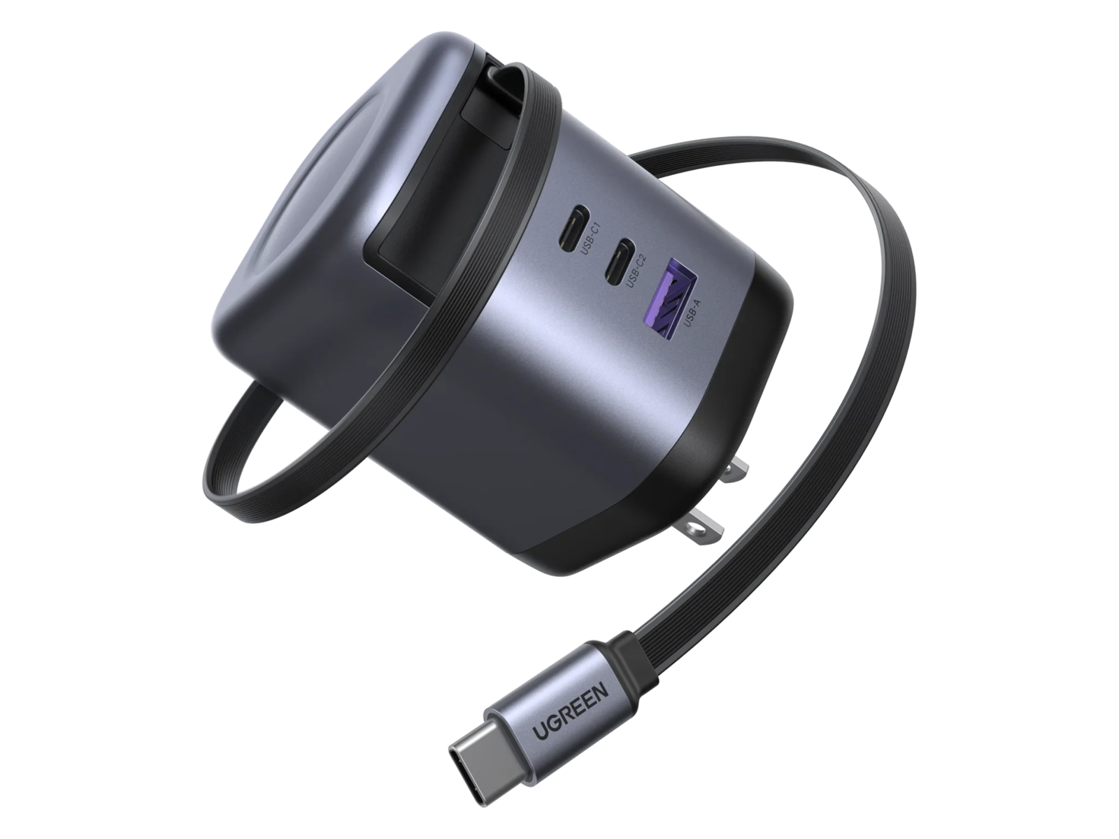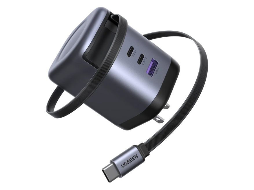 Встроенный кабель зарядного устройства Ugreen рассчитан на более чем 25 000 циклов смотки и 10 000 сгибаний, достигая максимальной длины 75 см. Кроме того, устройство обладает защитой от скачков напряжения, перегрузки по току и перегрева. Благодаря использованию технологии GaN и складным контактам, устройство отличается компактными размерами: 69 x 57 x 50 мм и весом около 280 грамм.
