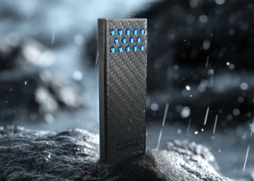 Корпус гаджета выполнен из прочного углеродного композитного материала, что делает его не только легким, но и устойчивым к внешним воздействиям. Устройство соответствует стандарту водонепроницаемости IPX8 (оно может выдерживать погружение в воду на глубину до 2 метров), что делает его подходящим для использования в дождь или в походных условиях. При весе 170 г аккумулятор остается достаточно легким для повседневного ношения, хоть и стал весить на 12 г больше своего предшественника. Несмотря на это, корпус стал прочнее, а функциональность расширилась, особенно по части быстрой зарядки. На корпусе устройства отсутствует сертификация CCC, что ограничивает его ввоз или использование на территории Китая.