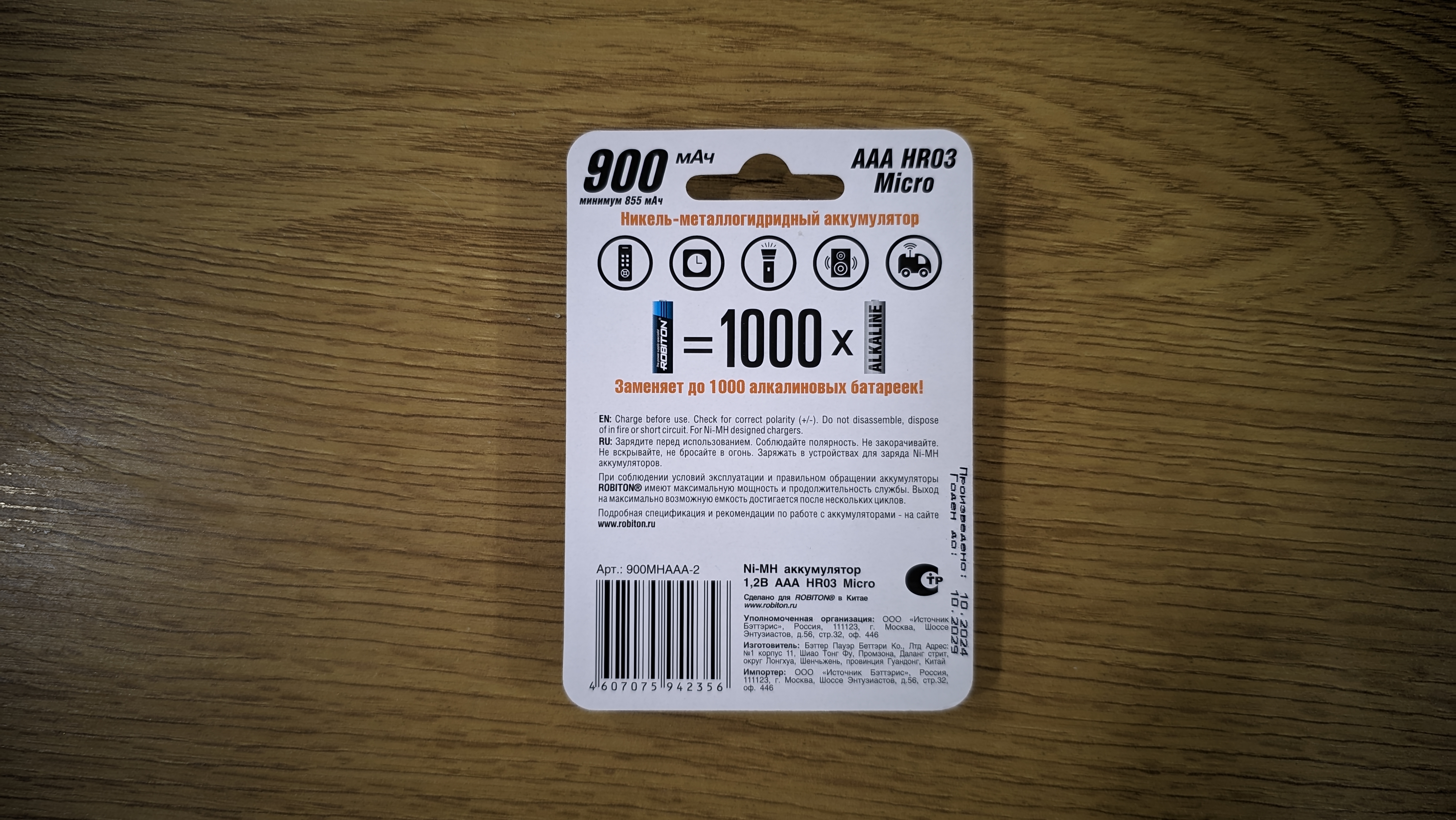 Аккумуляторы формата AAA обычно воспринимаются как расходник: вставил, работает — и на этом все. Но когда на упаковке указано 900 мАч и до 1000 циклов, логично разобраться, что именно означает каждая из этих цифр и в каких условиях они получены. В обзоре речь пойдет о Robiton 900MHAAA. Я разберу заявленные параметры, посмотрю, как в спецификации описаны режимы заряда и разряда, и на что стоит обращать внимание, если ориентироваться не на крупную надпись на блистере, а на характеристики и особенности.