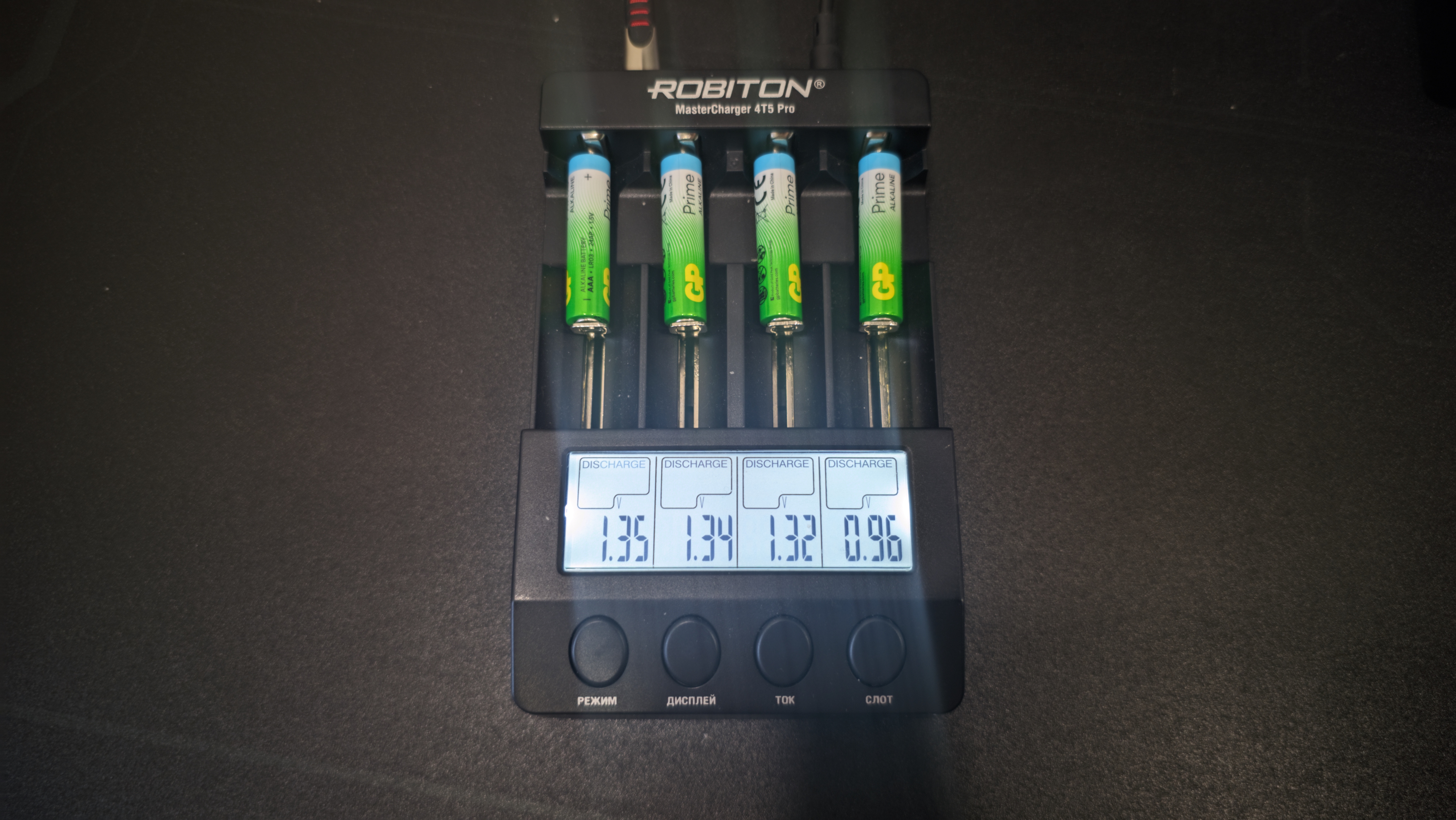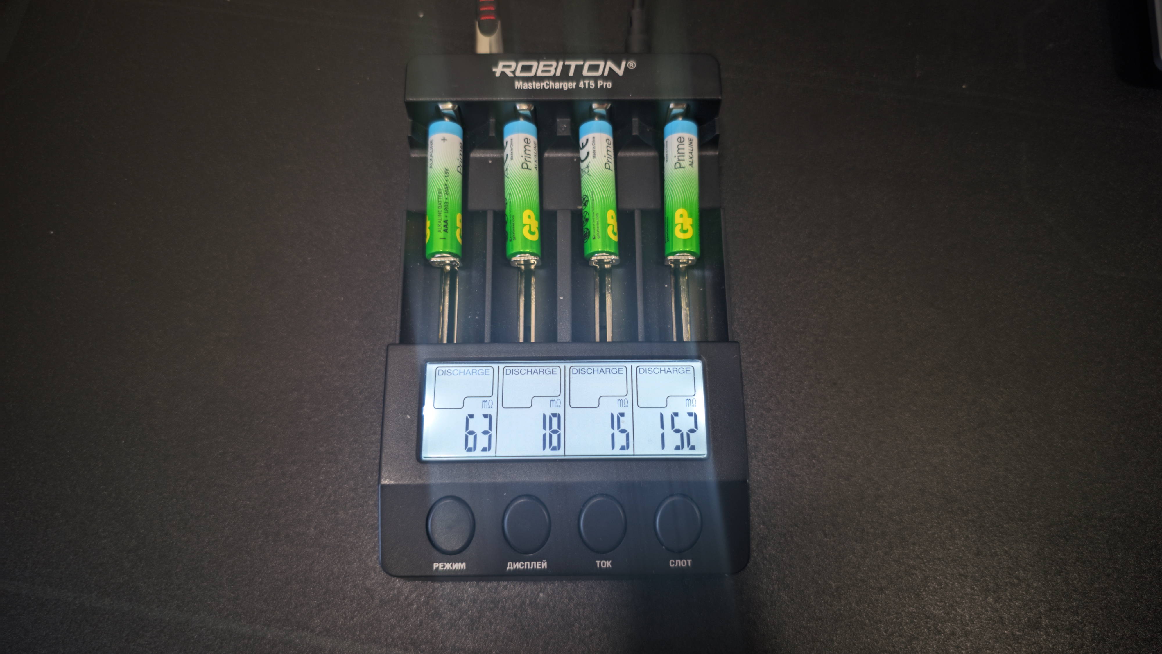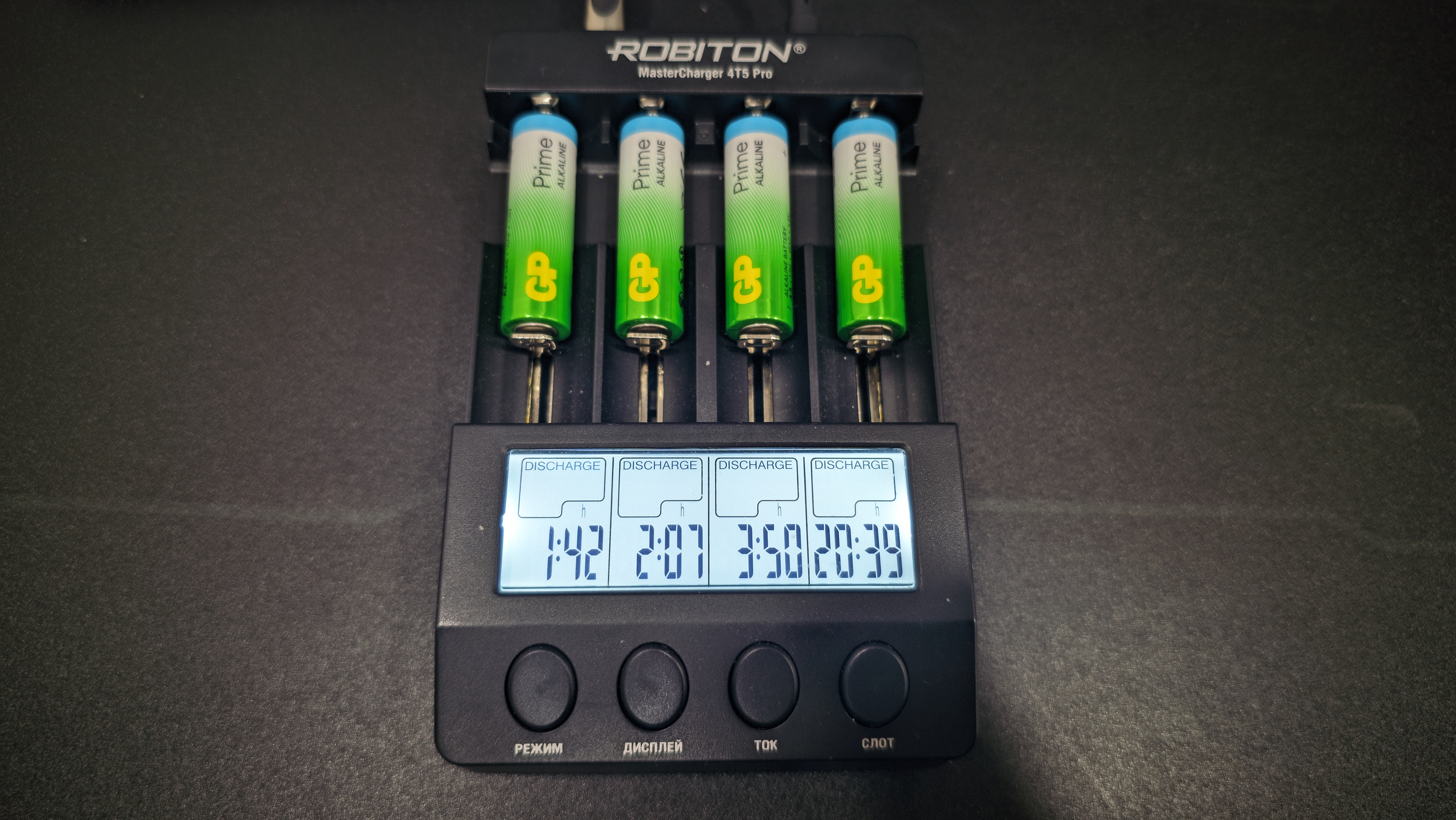 Все замеры я проводил на зарядном устройстве Robiton MasterCharger 4T5 Pro. Все батарейки тестировались в одинаковых условиях, без замены настроек и без корректировок по ходу процесса. Для разряда использовались четыре фиксированных тока — 1000, 700, 400 и 100 мА.