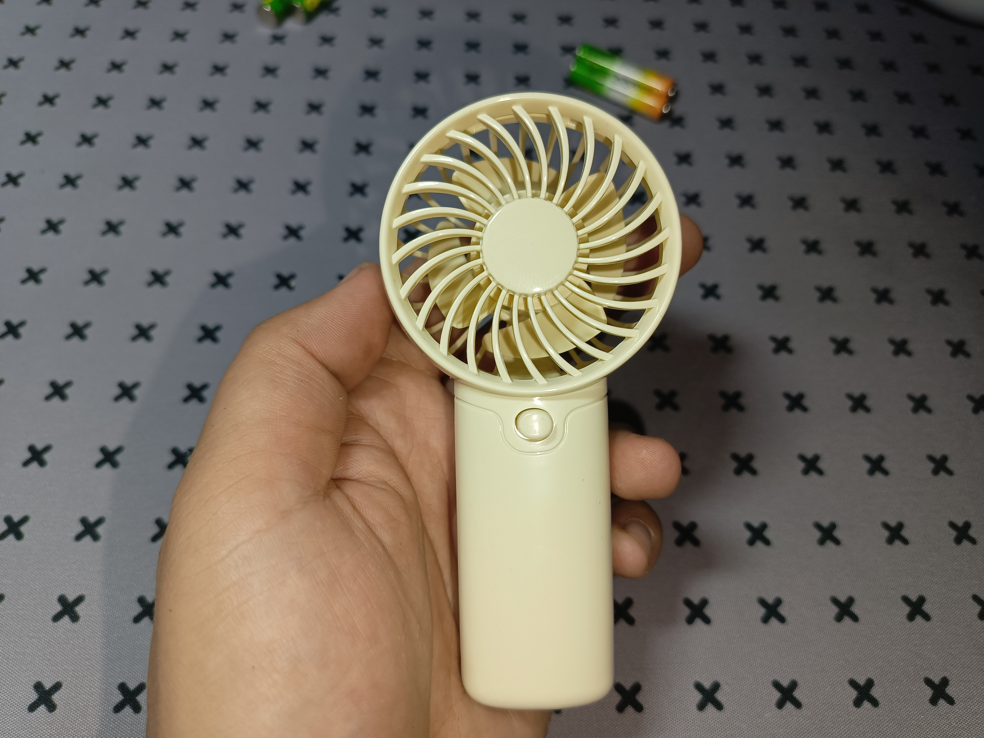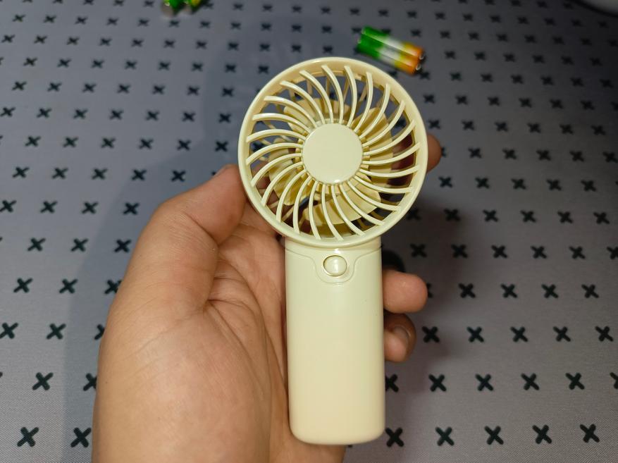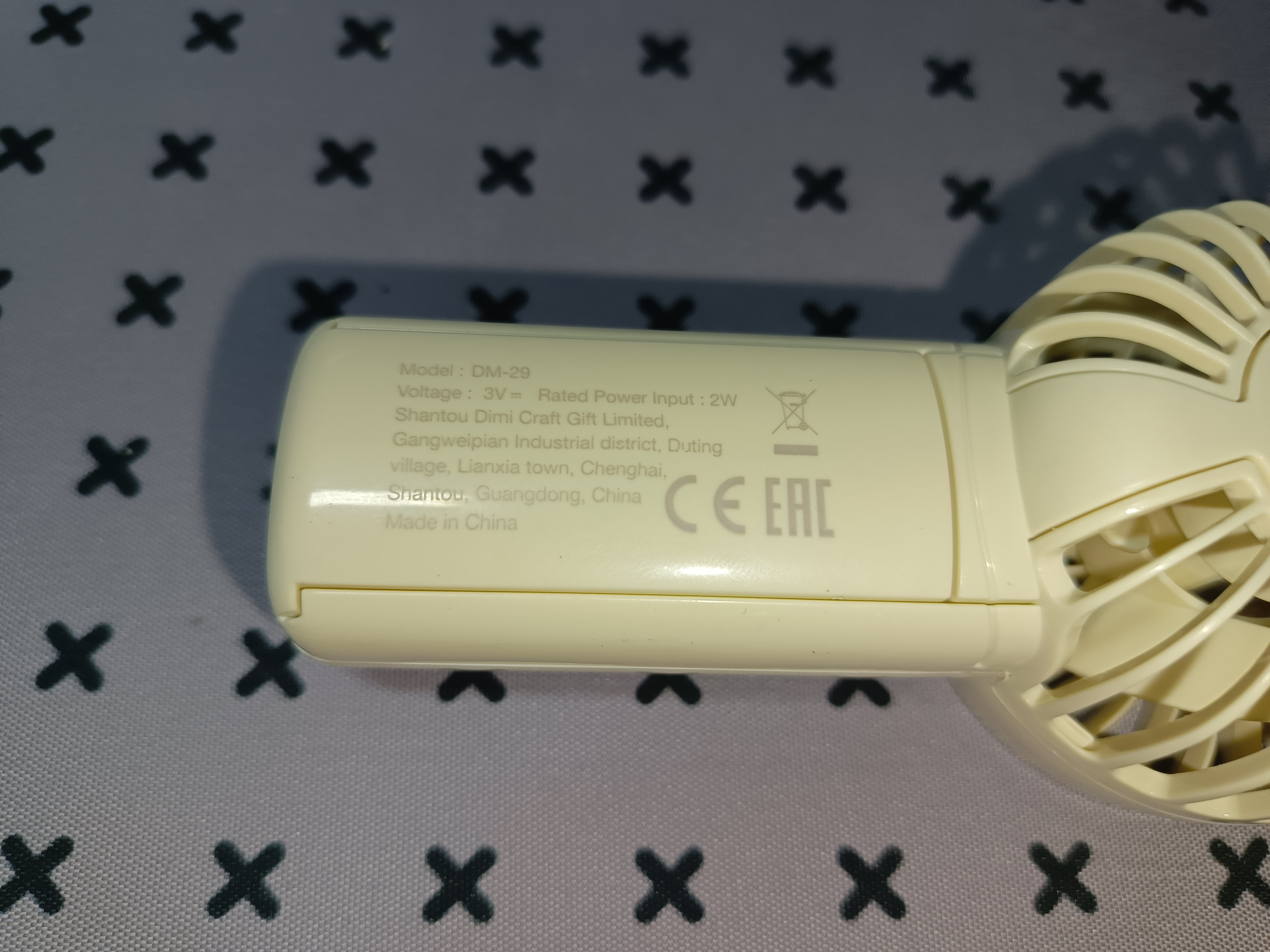 В первую очередь мне стало интересно посмотреть, что за вентилятор. Питается он от двух батареек формата ААА. Мощность 2 Вт, при напряжении 3 В получаем силу тока в 0,6 А. Вентилятор дует достаточно мощно и создает воздушный поток около 2,6 м/с, что характерно примерно для компьютерного вентилятора 120х120 мм примерно на 1800 оборотов в минуту. Воздушный поток направленный, крыльчатка маленькая, и из-за этого создается шум около 45 дБ.