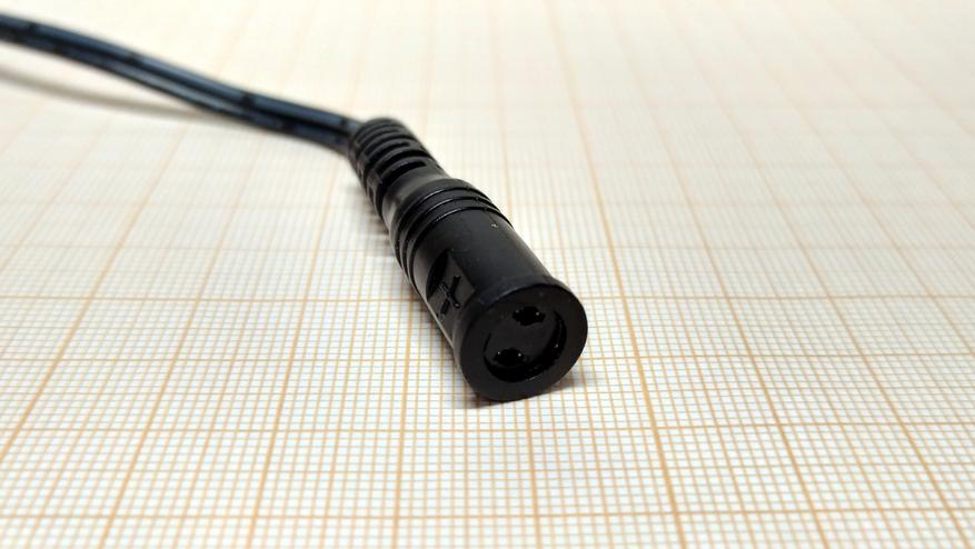 Выходное напряжение с блока питания снимается посредством кабеля длиной 1400 мм, на его конце смонтирована розетка для подключения съёмных штекеров входящих в комплект. Усилие расчленения штекеров с розеткой составляет ~0,9 кг.