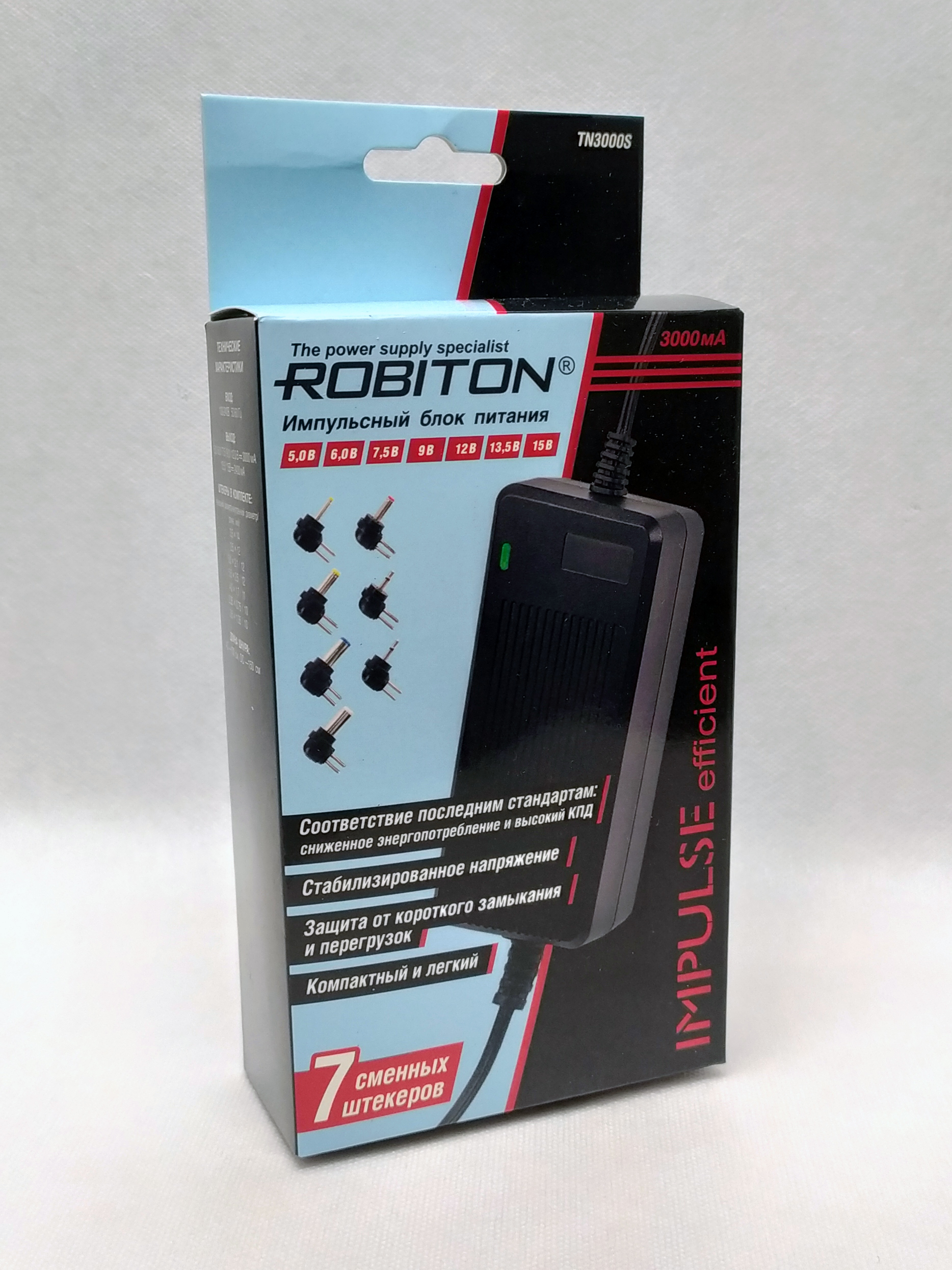 Внешние блоки питания применяются в большом количестве устройств, начиная от зарядки аккумуляторов заканчивая сложными электронными устройствами, например планшетными компьютерами и ноутбуками. Временами случается, что эти блоки питания выходят из строя, в таком случае, заменить оригинальный блок питания можно универсальным с требуемым фиксированным выходным напряжением или диапазоном выходных напряжений, также в комплект таких блоков питания, как правило входит комплект наиболее часто применяемых штекеров. Предлагаю рассмотреть один из таких блоков питания — Robiton TN3000S.