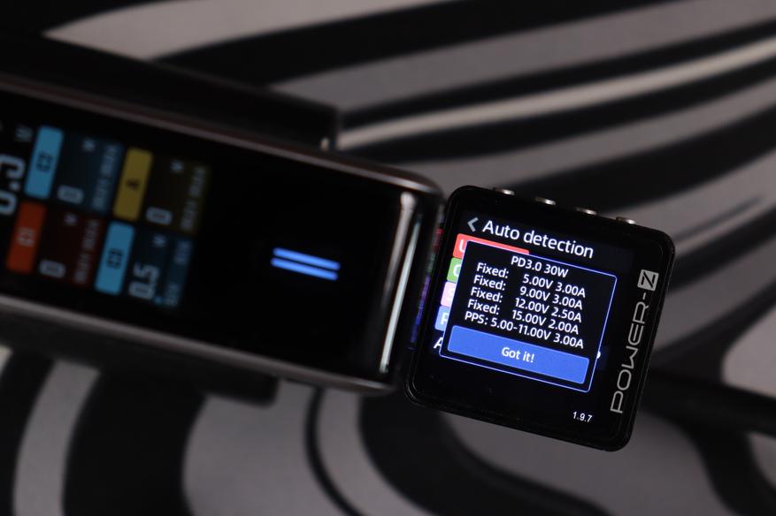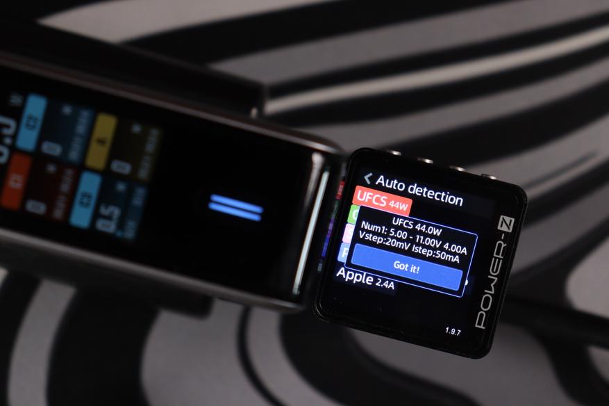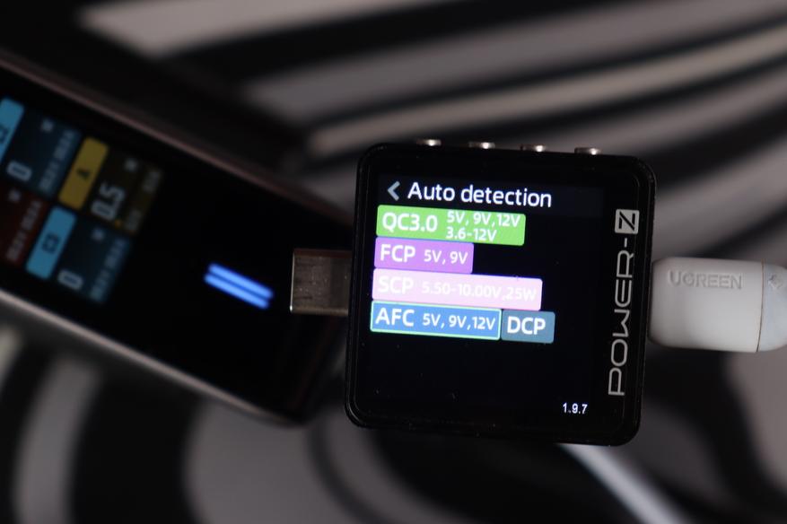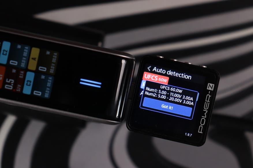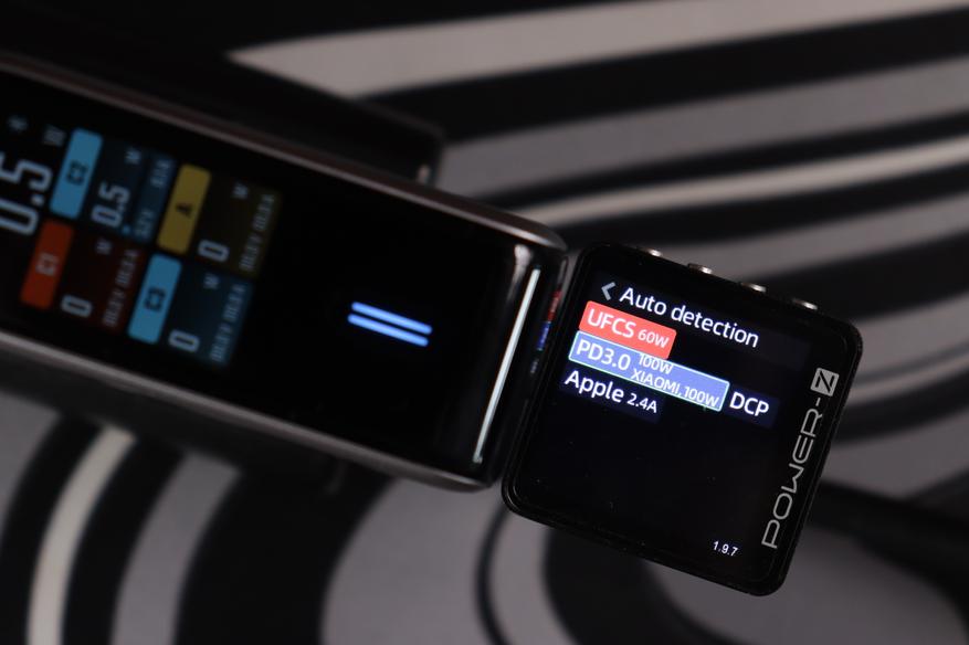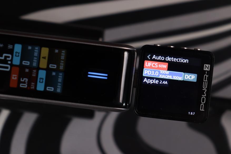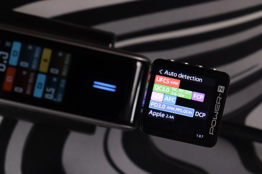Тестер протоколов (Power-Z) распознал полный набор поддерживаемых стандартов: UFCS (до 60W), PD 3.0 (100W с профилями от 5V до 20V), фирменный протокол Xiaomi (100W), QC3.0, AFC, FCP, Apple 2.4A и DCP. Это означает совместимость практически с любым современным устройством — от iPhone до игровых ноутбуков. Особенно порадовал UFCS — новый универсальный стандарт быстрой зарядки, который набирает популярность в Китае и постепенно приходит на глобальный рынок.