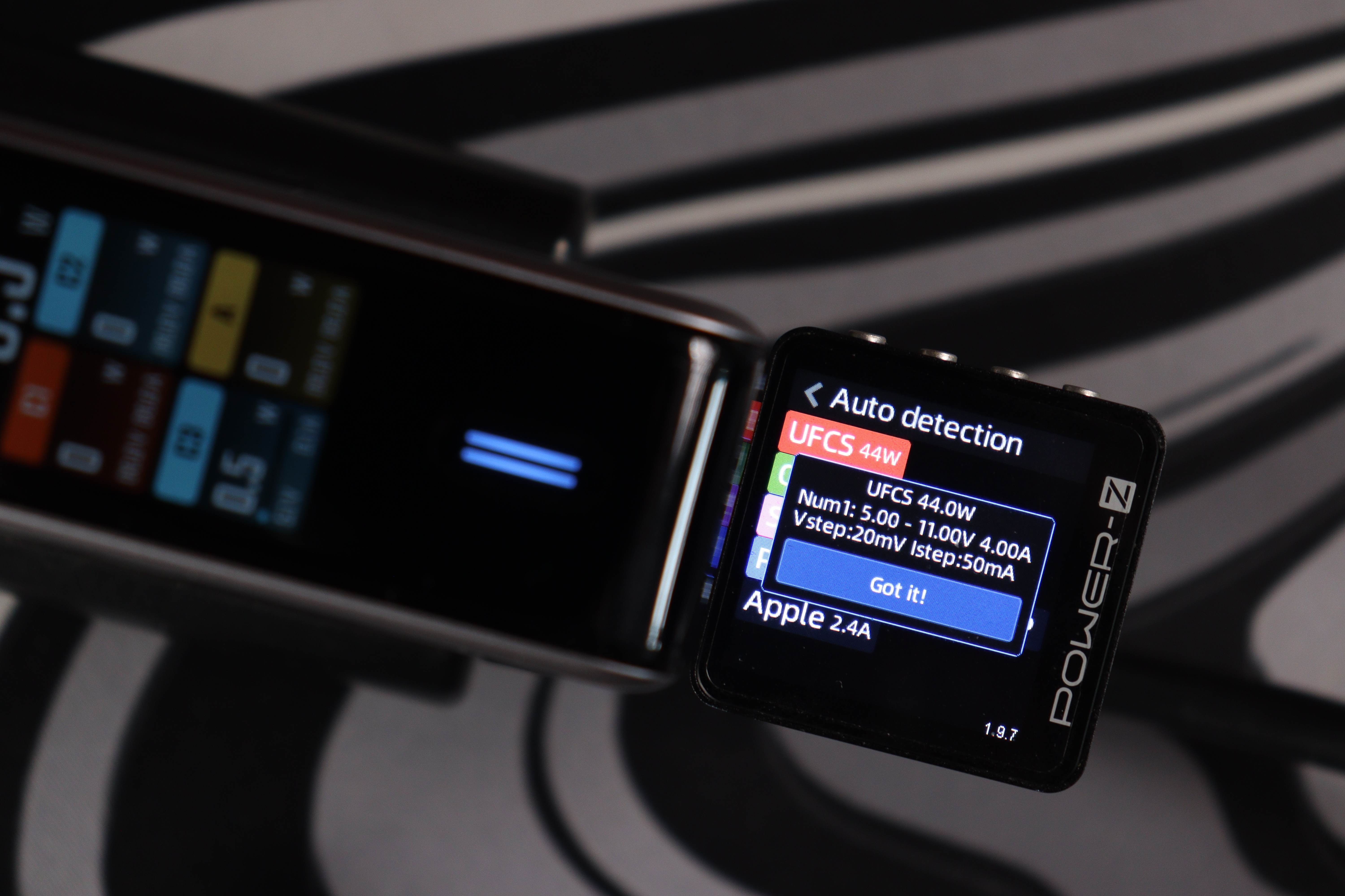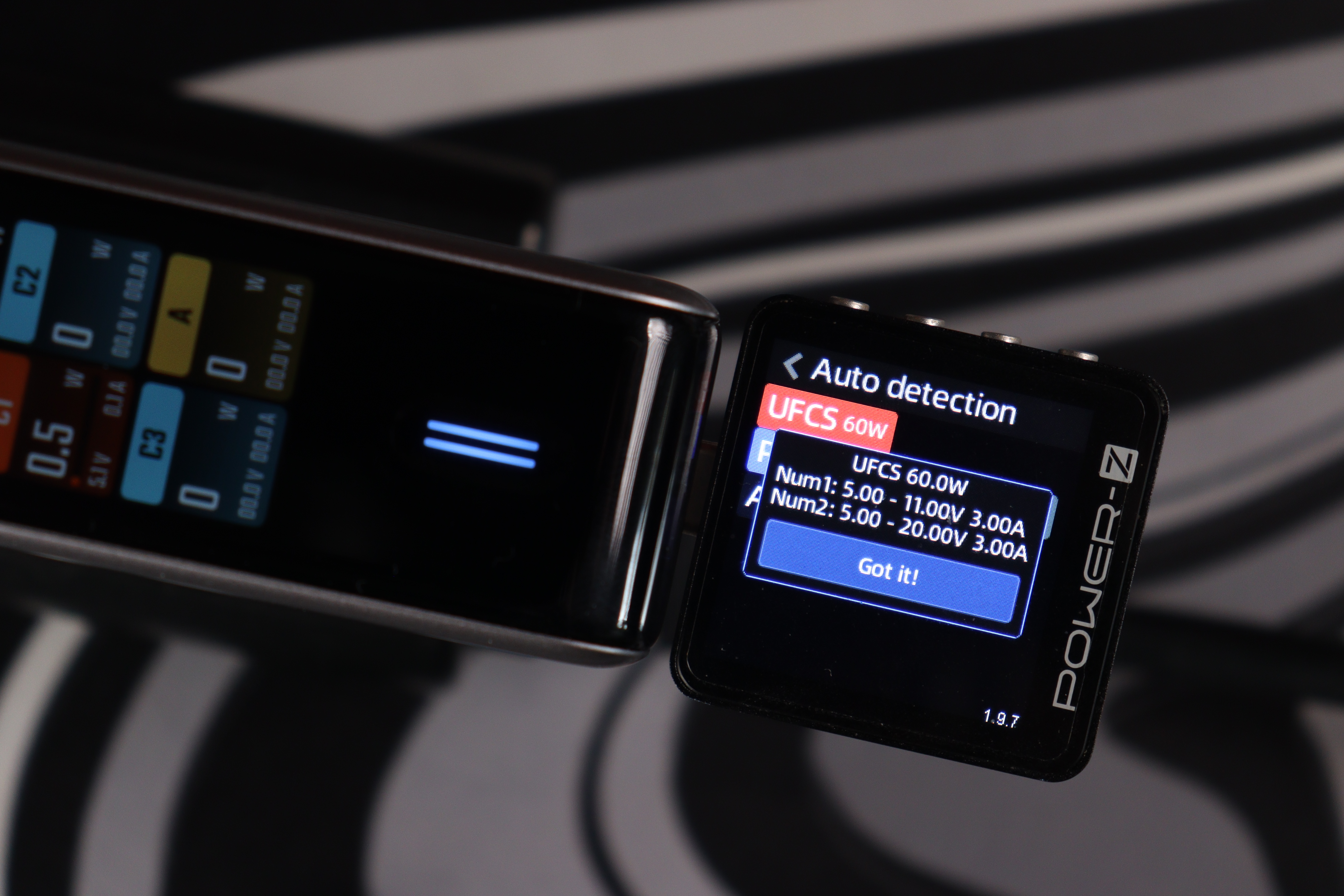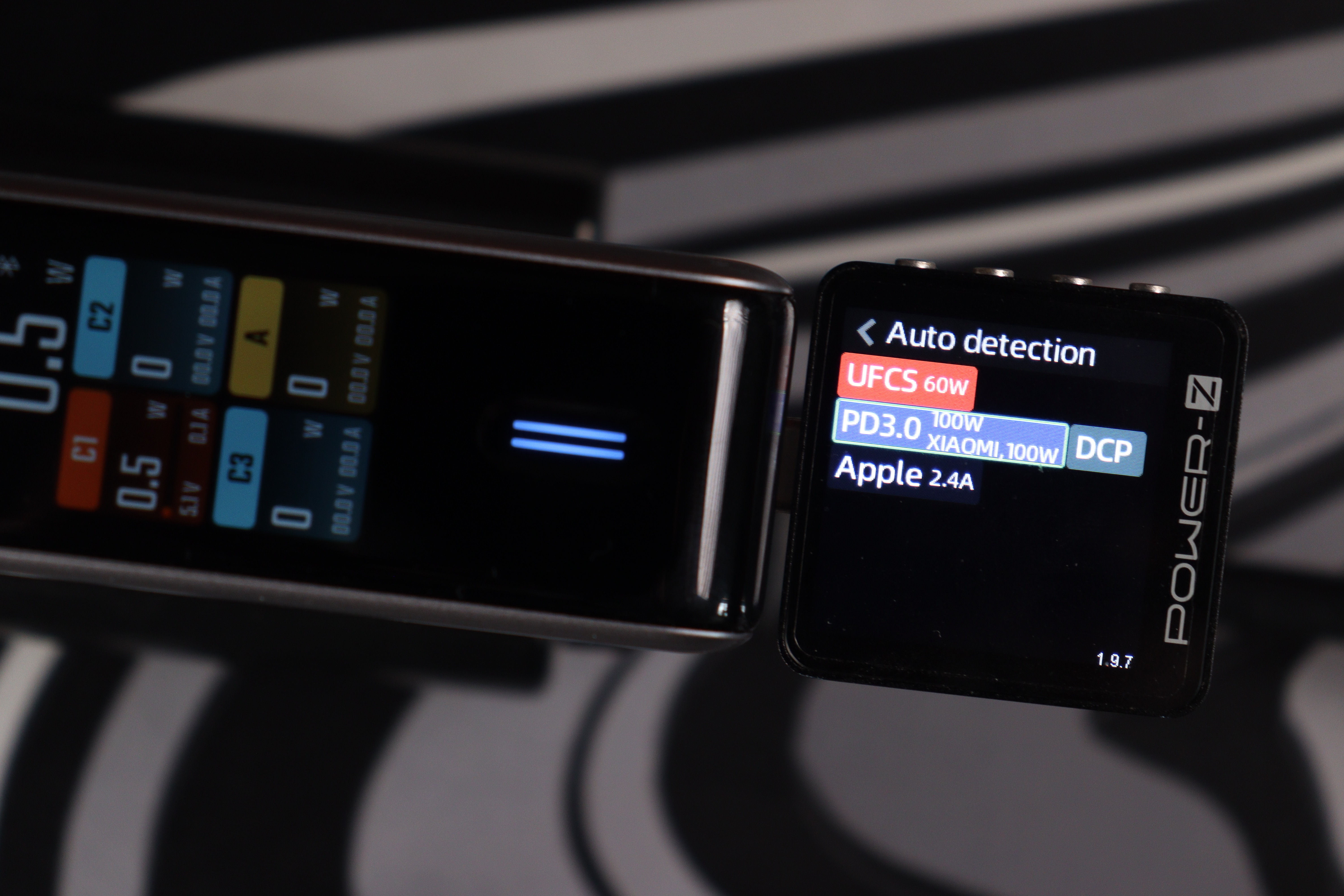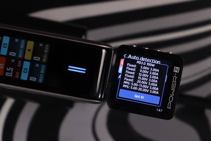 Тестер протоколов (Power-Z) распознал полный набор поддерживаемых стандартов: UFCS (до 60W), PD 3.0 (100W с профилями от 5V до 20V), фирменный протокол Xiaomi (100W), QC3.0, AFC, FCP, Apple 2.4A и DCP. Это означает совместимость практически с любым современным устройством — от iPhone до игровых ноутбуков. Особенно порадовал UFCS — новый универсальный стандарт быстрой зарядки, который набирает популярность в Китае и постепенно приходит на глобальный рынок.