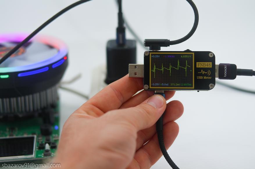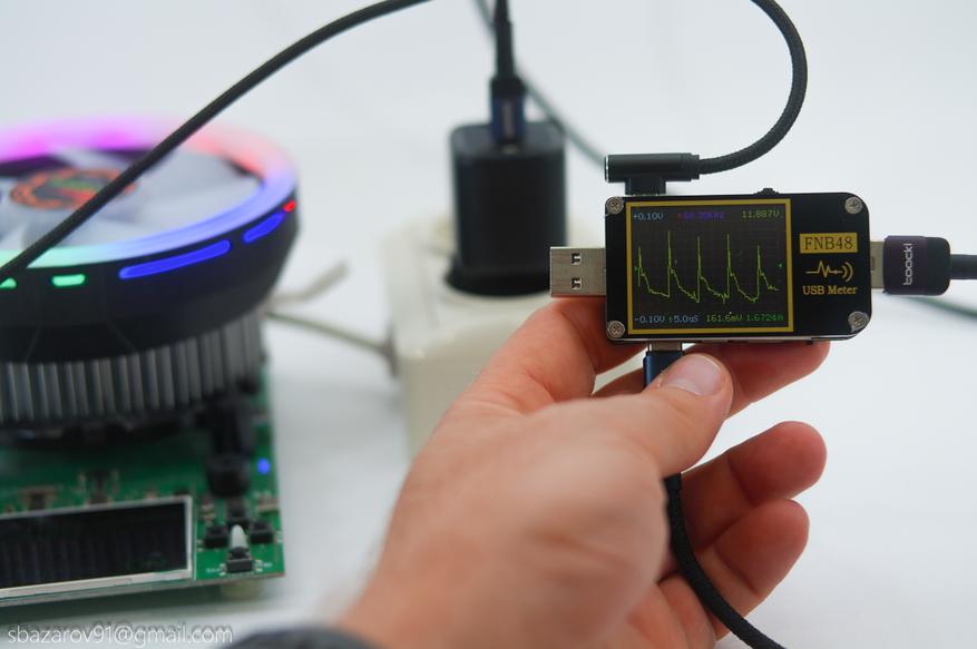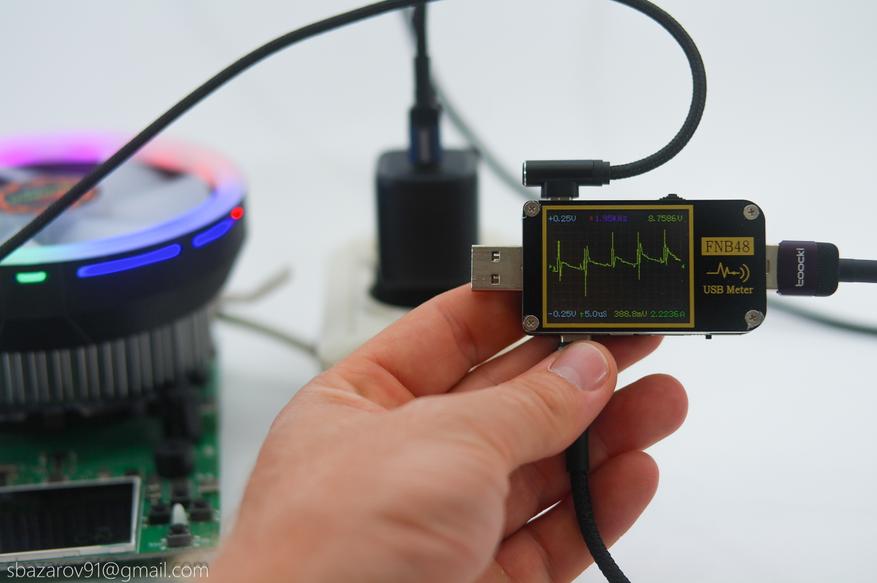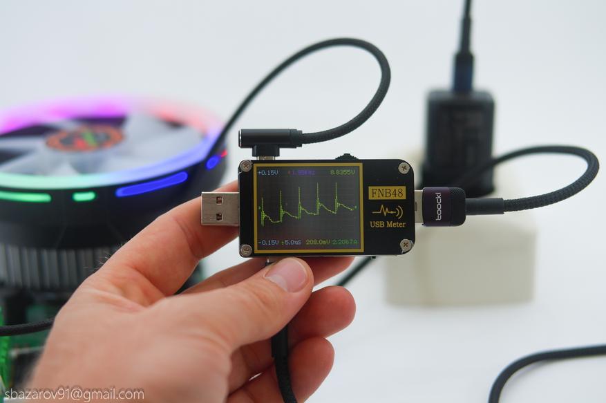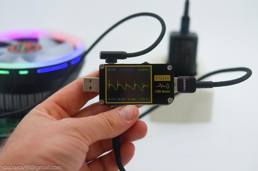 Немаловажный фактор — пульсации напряжения и тока, которые могут влиять на работу чувствительной электроники. Высокие пульсации приводят к сбоям, перегреву и помехам (например, в аудиоаппаратуре). Поэтому также проверим каждый из 3-х разъемов на всех заявленных для них параметров.