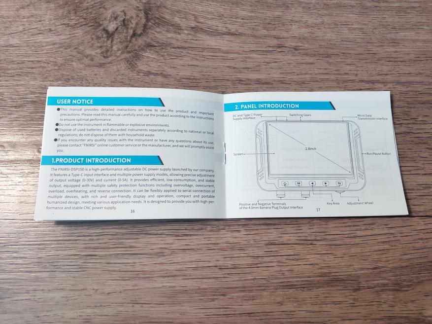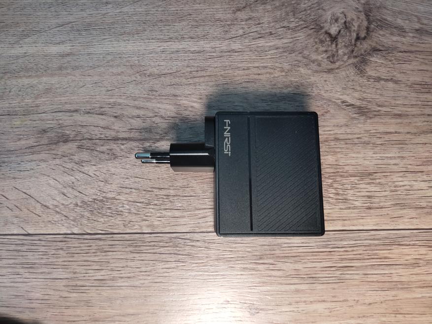Преобразователь может поставляться в комплекте с мощным, фирменным зарядным устройством от Fnirsi (100Вт), и соответствующим Type-C to Type-С кабелем (1.5м, 100Вт). У меня как раз такая комплектация. Вот как выглядит зарядное устройство и кабель: