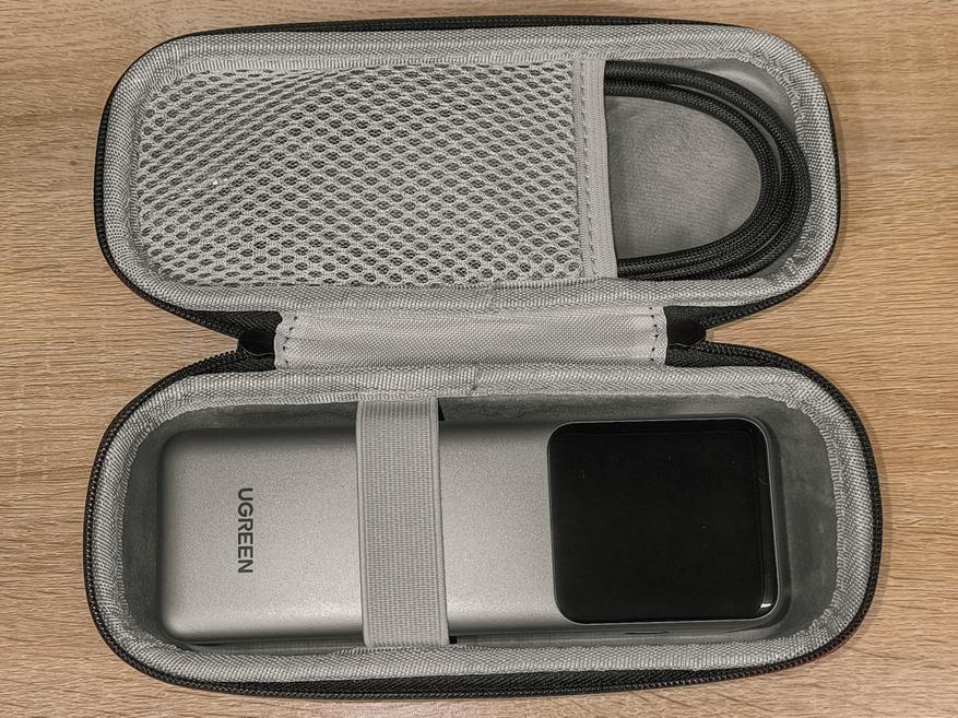 Чехол который покупал для повербанка Ugreen PB722, для обозреваемого повербанка ожидаемо оказался крупноватым. По ширине остаётся довольно много месте, куда в теории можно поместить какую-то мини зарядку, если удастся такую найти.