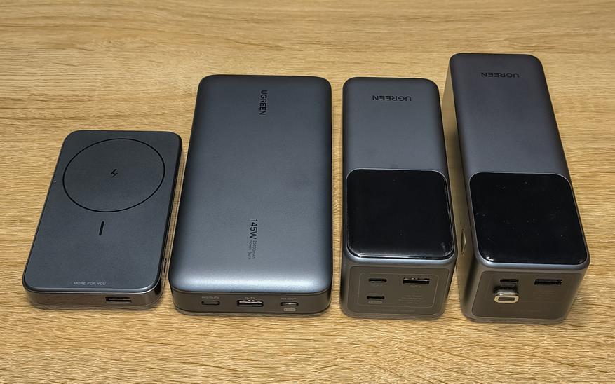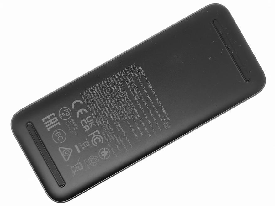 Ugreen PB722 выполнен в аналогичном дизайне, за исключением разве что немного большей длины. Ёмкость у PB722 25000mAh. Общая максимальная мощность составляет 200W, а максимальная мощность порта USB-C1 140W. Этот повербанк можно заряжать через любой из портов USB-C, но эти порты поддерживают меньшее количество протоколов быстрой зарядки, чем у героя обзора.