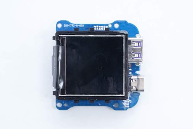Повербанк Ugreen PB721 оснащен TFT дисплеем диагональю четыре сантиметра. На главном окне дисплея большими цифрами указана текущая ёмкость повербанка в процентах, а вверхнем правом углу сообщается остаток времени работы. Внизу дисплея указано состояние портов: какой порт активен, идёт заряд или разряд, а так же текущая мощность порта. На втором окне в реальном времени отображается напряжение, ток и кривая мощности каждого из портов.