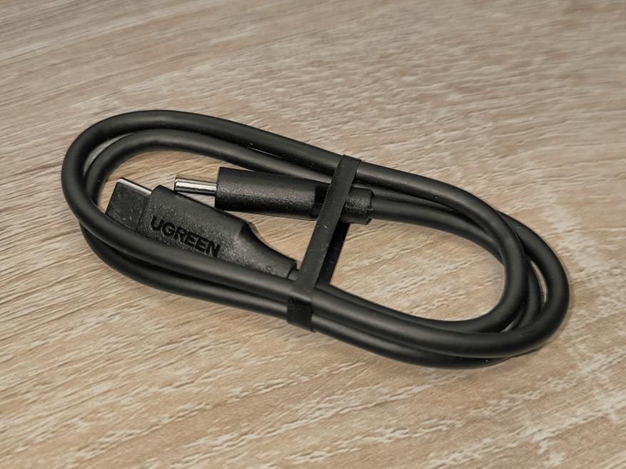 - Пятидесятисантиметровый стоваттный (по другим данным 240W) кабель USB-C/USB-C.