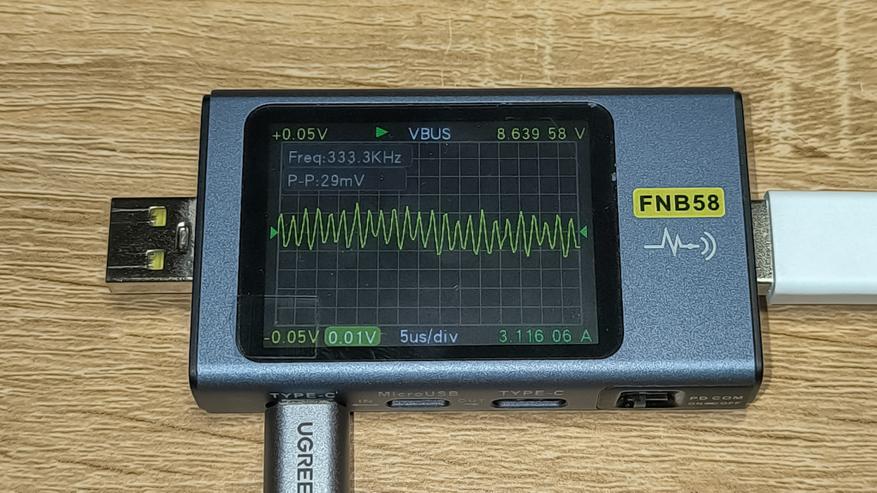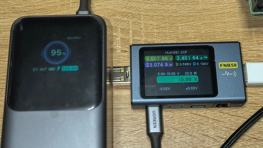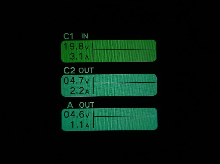 При подаче питания на порт USB-C1, подключение и отключение устройств от остальной портов не прерывает подачу питания на порт USB-C1. То же самое можно сказать и про порт USB-C2. Единственный случай прерывания питания был замечен тогда, когда я подключил телефон к порту USB-A, а потом другой телефон подключил к порту USB-C2 — порт USB-A перезагрузился.