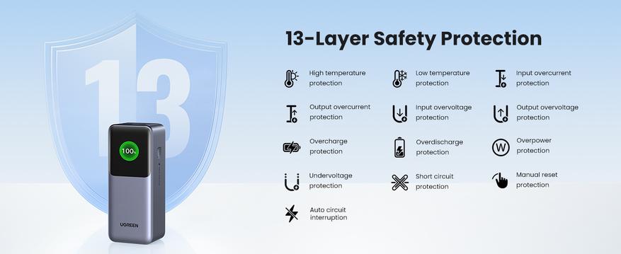 Если на дисплее появляется значок в виде треугольника со знаком вопроса, то это означает что сработала защита: от перегрузки по току, перенапряжения или пониженного напряжения. В этом случае нужно отсоединить кабель и перезагрузить повербанк. Если на дисплее появляется значок в виде термометра, то это означает что сработала защита от перегрева. В данном случае нужно отсоединить кабель и дать остыть повербанку в течение получаса.
