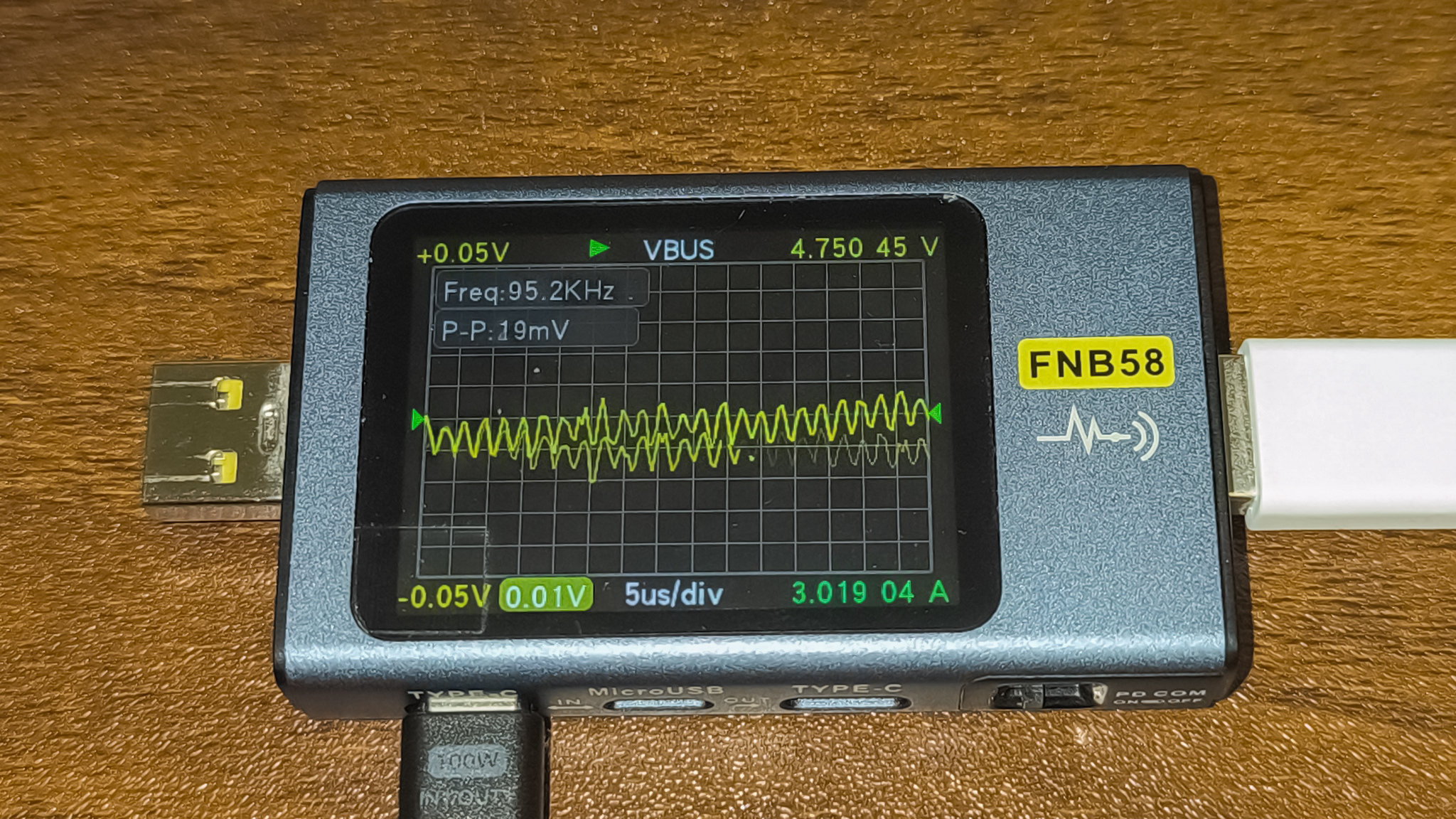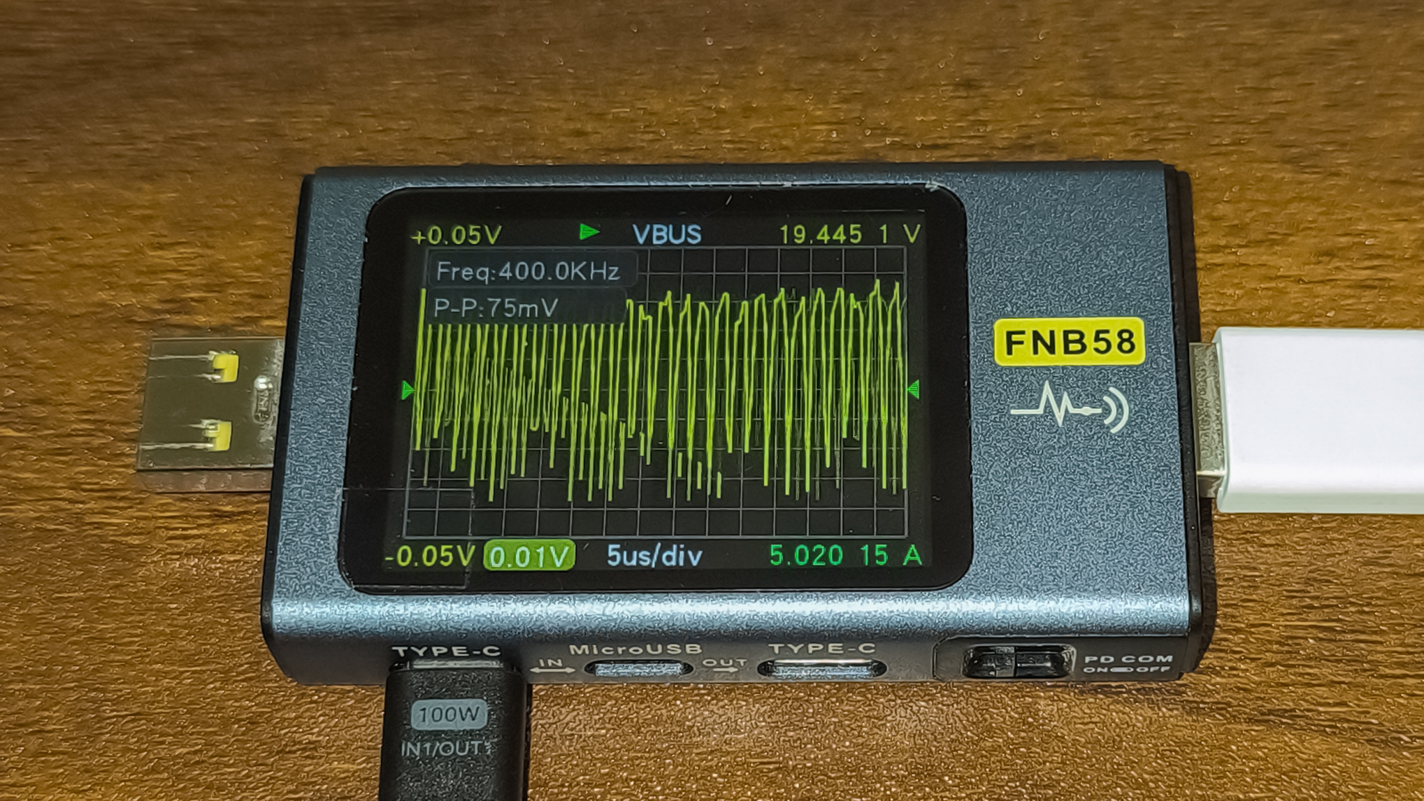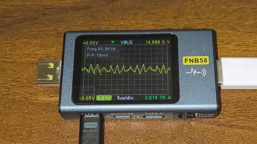 Показатели пульсаций у Ugreen PB726 оказались очень хорошими. Ниже можно ознакомится с замерами при различных напряжениях.