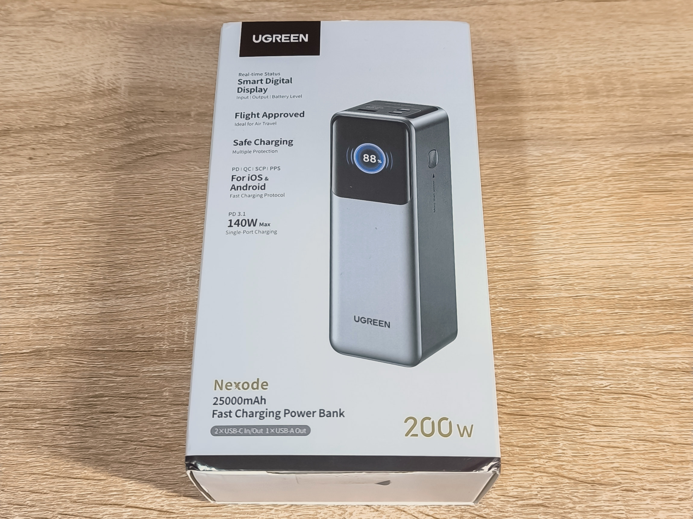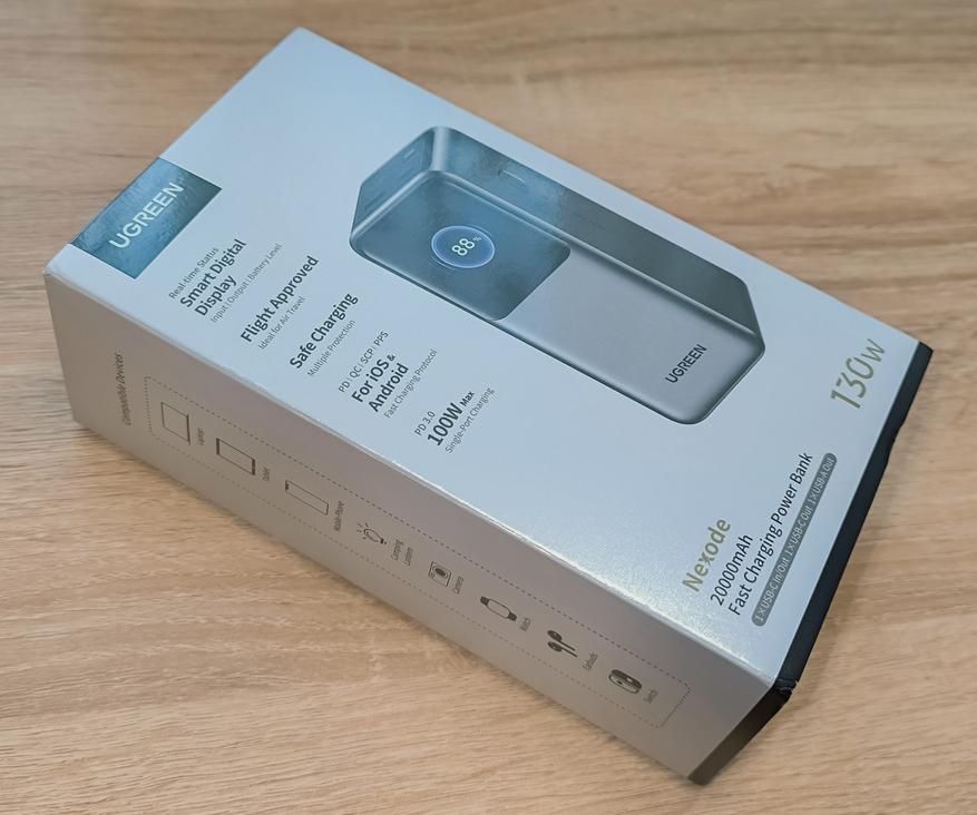 - Ugreen PB722: Оснащен аналогичным информационным дисплеем. Обладает ёмкостью 25000mAh, общей мощностью 200W и максимальной мощностью на одном порту 140W. Имеет два порта USB-C и один USB-A.
