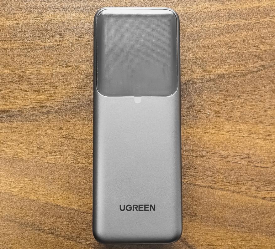 Корпус пауэрбанка Ugreen PB726 выполнен в виде продолговатого бруска с квадратным профилем. Корпус окрашен в серый матовый цвет (верхний торец и обратная сторона корпуса черные). Качество сборки хорошее.