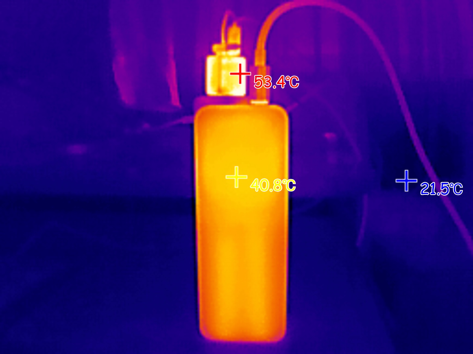 При подключении пауэрбанк к электронной нагрузке 100W (подключение происходило с помощью встроенного кабеля), максимальная температура корпуса пауэрбанка была зафиксирована на отметке 58 градусов. Температура внутри разъема USB-A поднялась до 69 градусов.