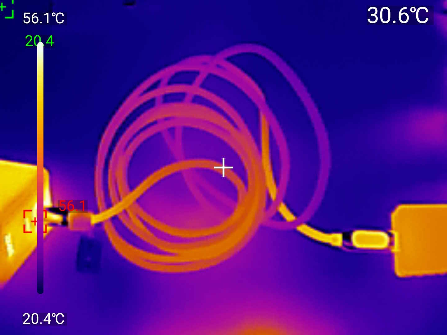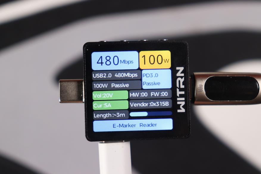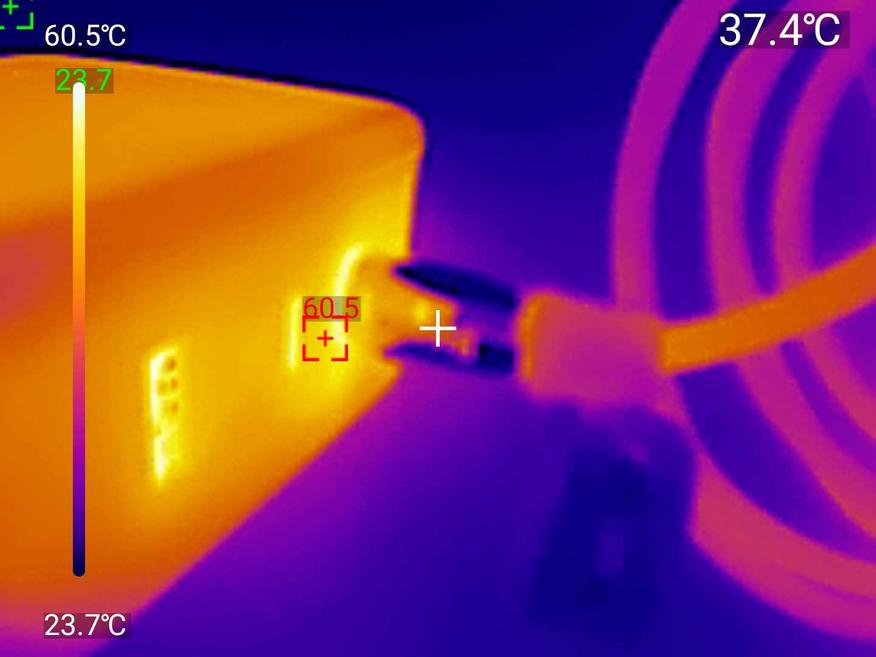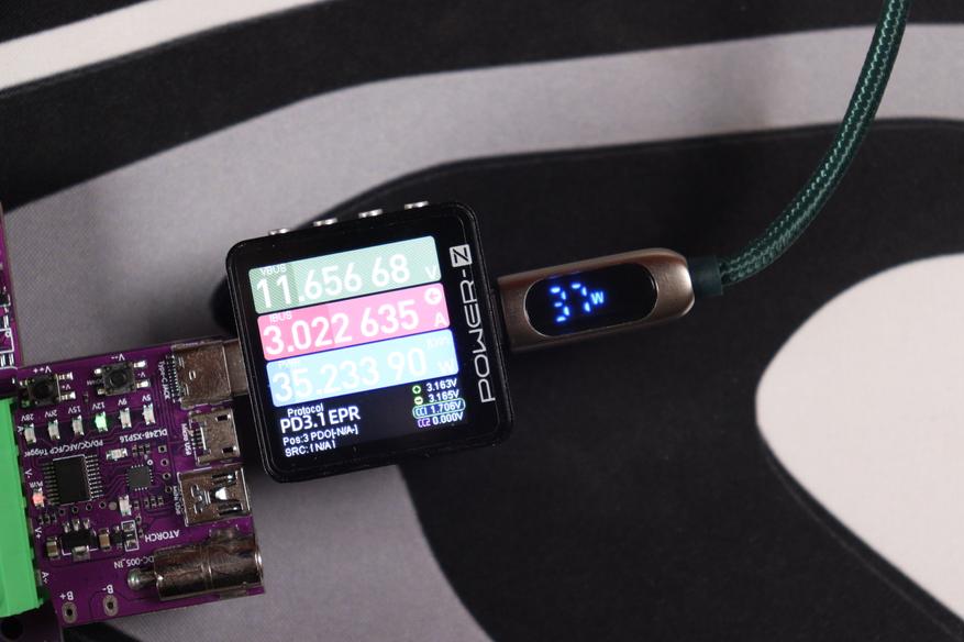 Послe чaса рaботы нa нагрузке околo 100Вт кабель ощутимо нагрелся, но не до критических температур. Тепловизор показал около 37°C в самой горячей точке у коннектора, что является нормой для такой нагрузки. Оплётка тёплая на ощупь, но не обжигает. По всей длине провода температура распределяется равномерно — порядка 30°C, что говорит о хорошем качестве жил внутри. Дисплей продолжал корректно отображать данные, никаких артефактов или сбоев не заметил.