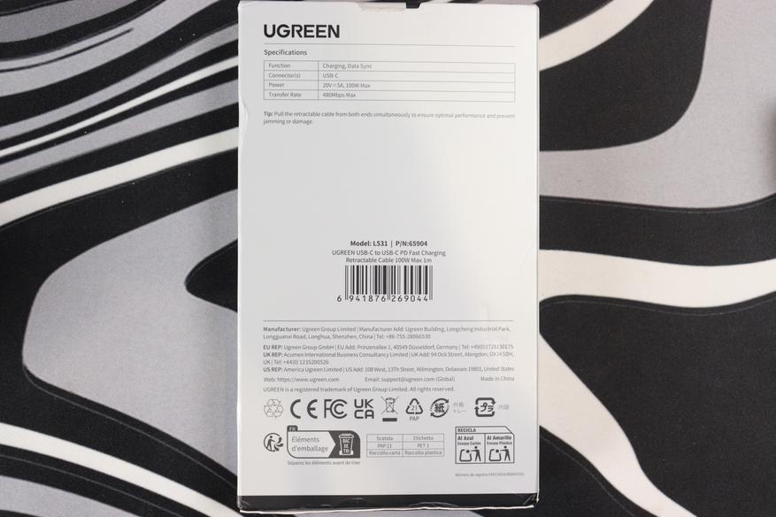 Выдвижные кабели — одна из тех штук, которые либо обожаешь, либо игнорируешь. UGREEN решил, что их версия на 100 Вт будет компактной, удобной и при этом достаточно мощной для большинства ноутбуков. Модель L531 — это USB-C на USB-C кабель с максимальной длиной 1 метр, встроенным механизмом сматывания и поддержкой Power Delivery 3.0. На бумаге выглядит неплохо, но интересно, как она справляется в реальности.