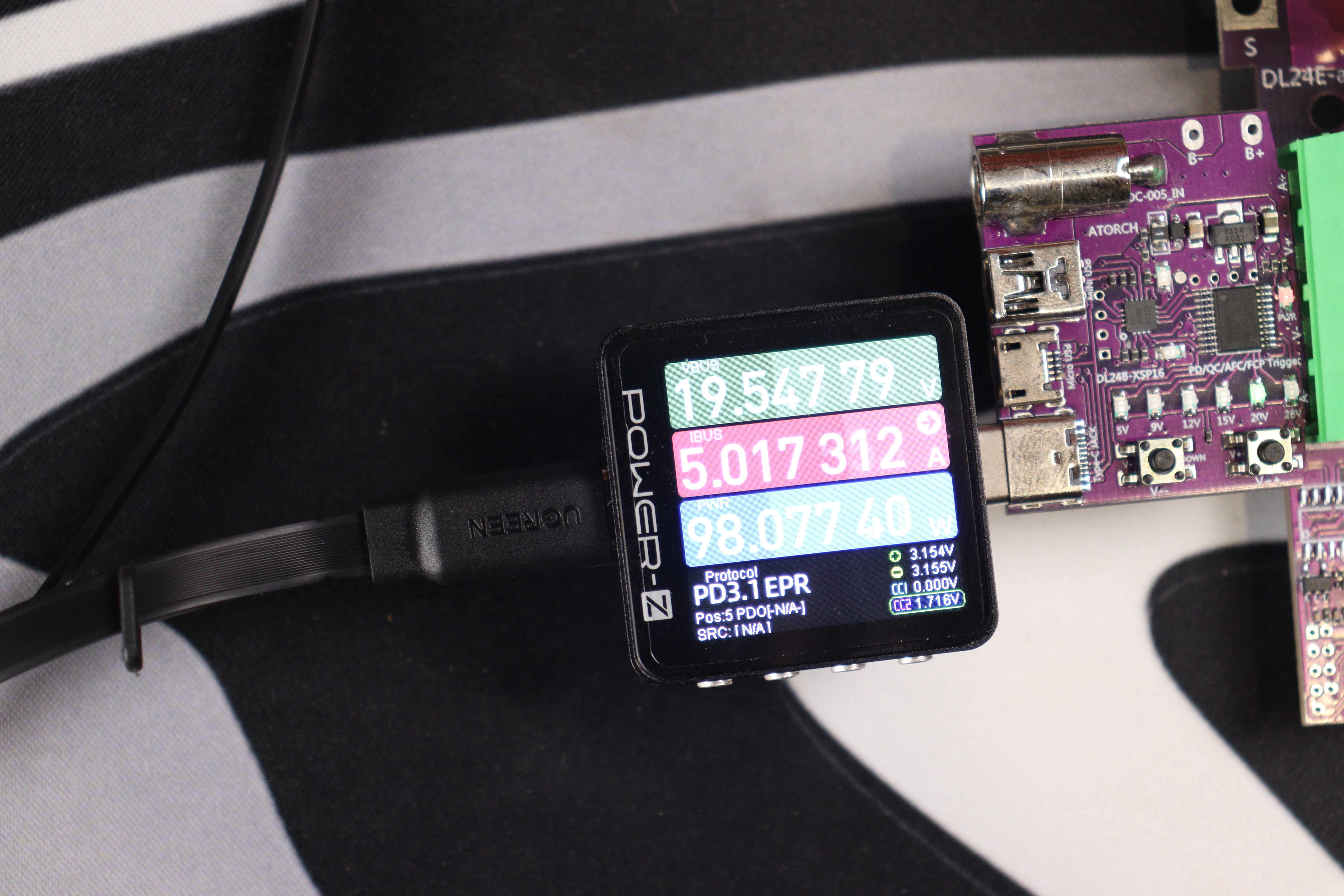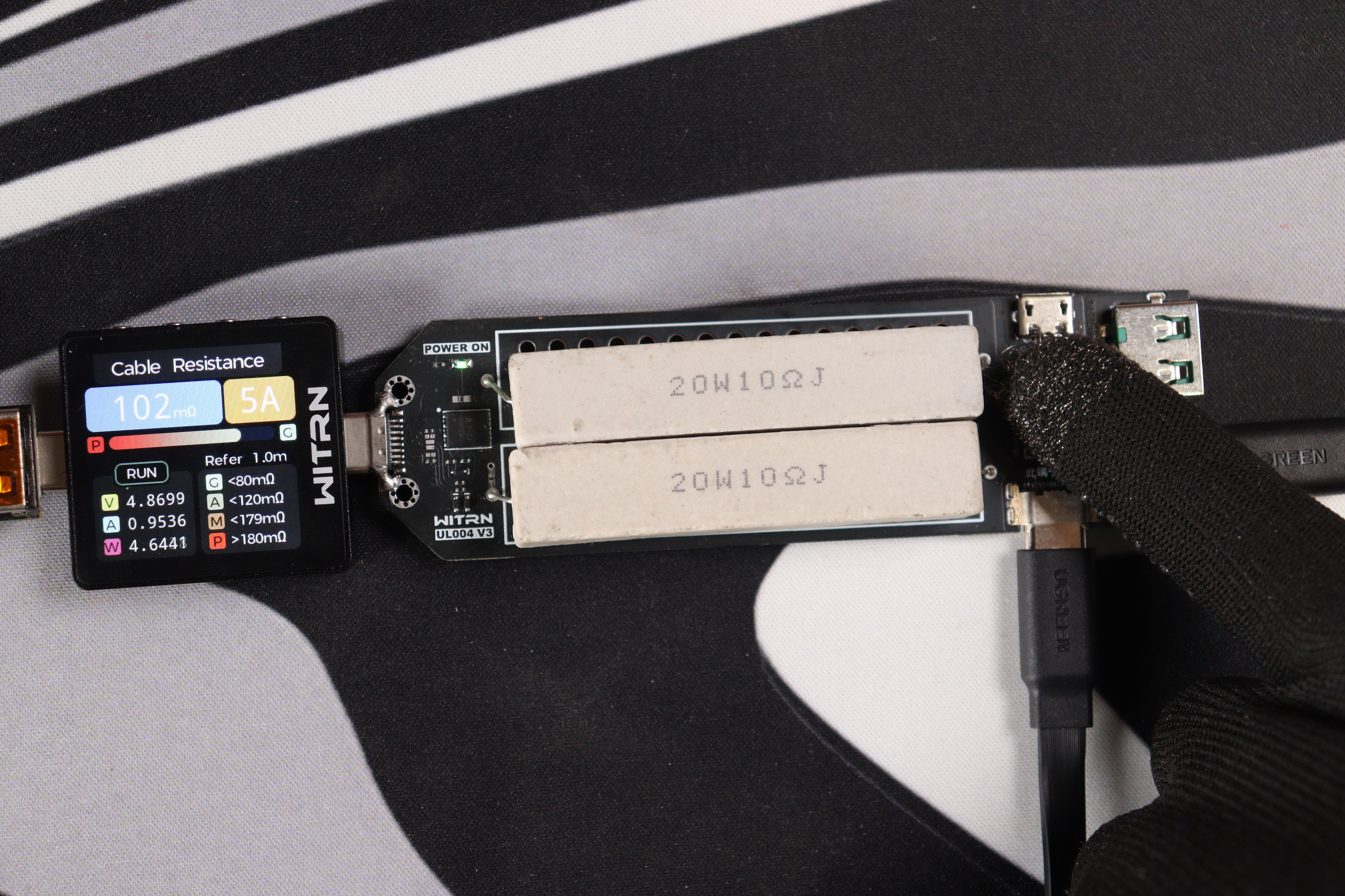 Измерения сопротивления показали вполне адекватные результаты для метрового кабеля такого типа. Тестер выдал значение около 102 мОм при токе 5А, что укладывается в допустимые нормы для кабелей на 100 Вт. Потери напряжения при полной нагрузке минимальны, зарядка устройств идёт эффективно. Конечно, это не топовый кабель с минимальным сопротивлением, но и не откровенный Китай с высокими потерями. Для повседневного использования — более чем достаточно.