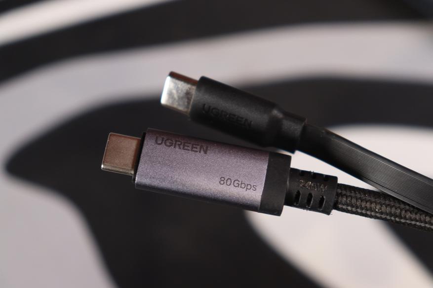 По размеру катушка заметно больше UGREEN на 240 Вт с поддержкой 80 Гбит — её удобнее носить в кармане или сумке