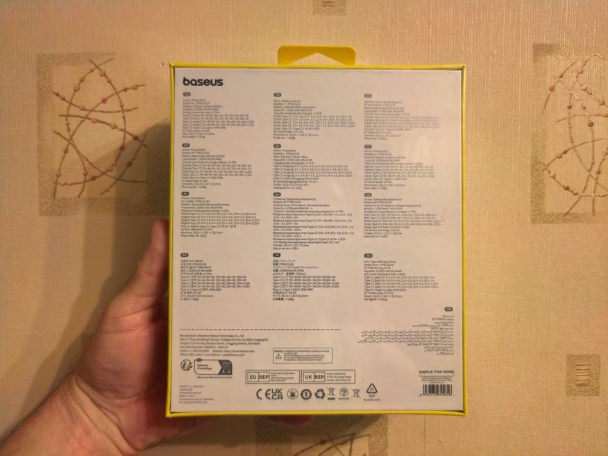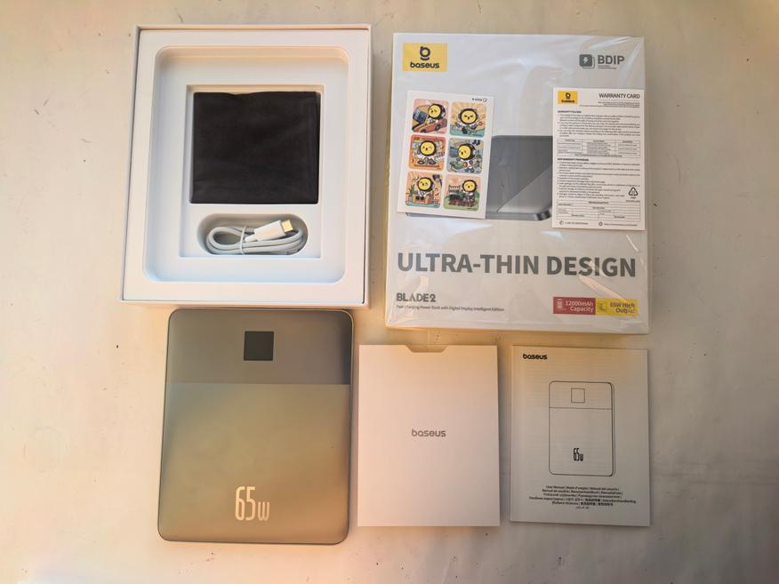 В комплект товара входит повербанк, кабель для заряда, чехол, инструкция и гарантийный талон с наклейками от Baseus.