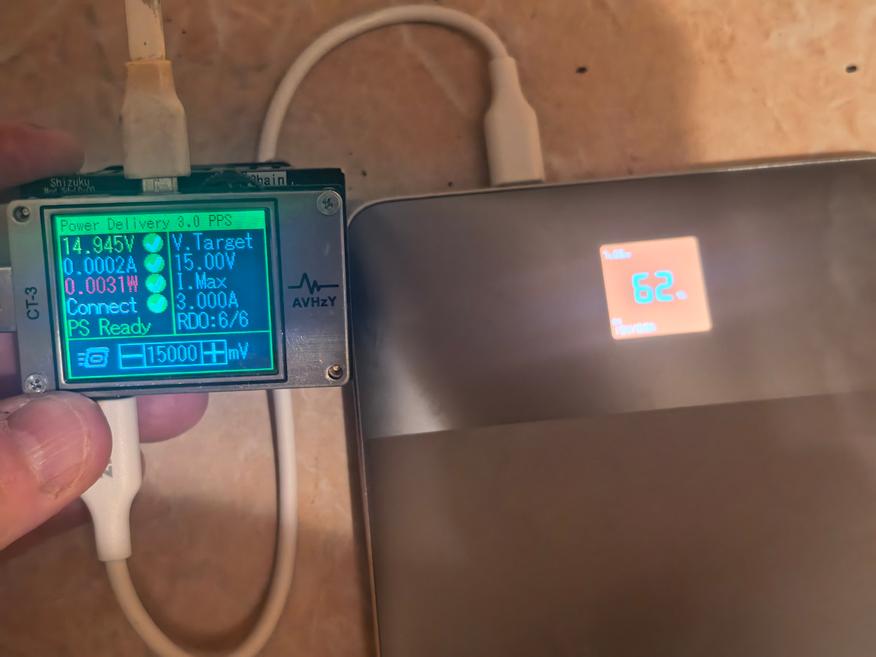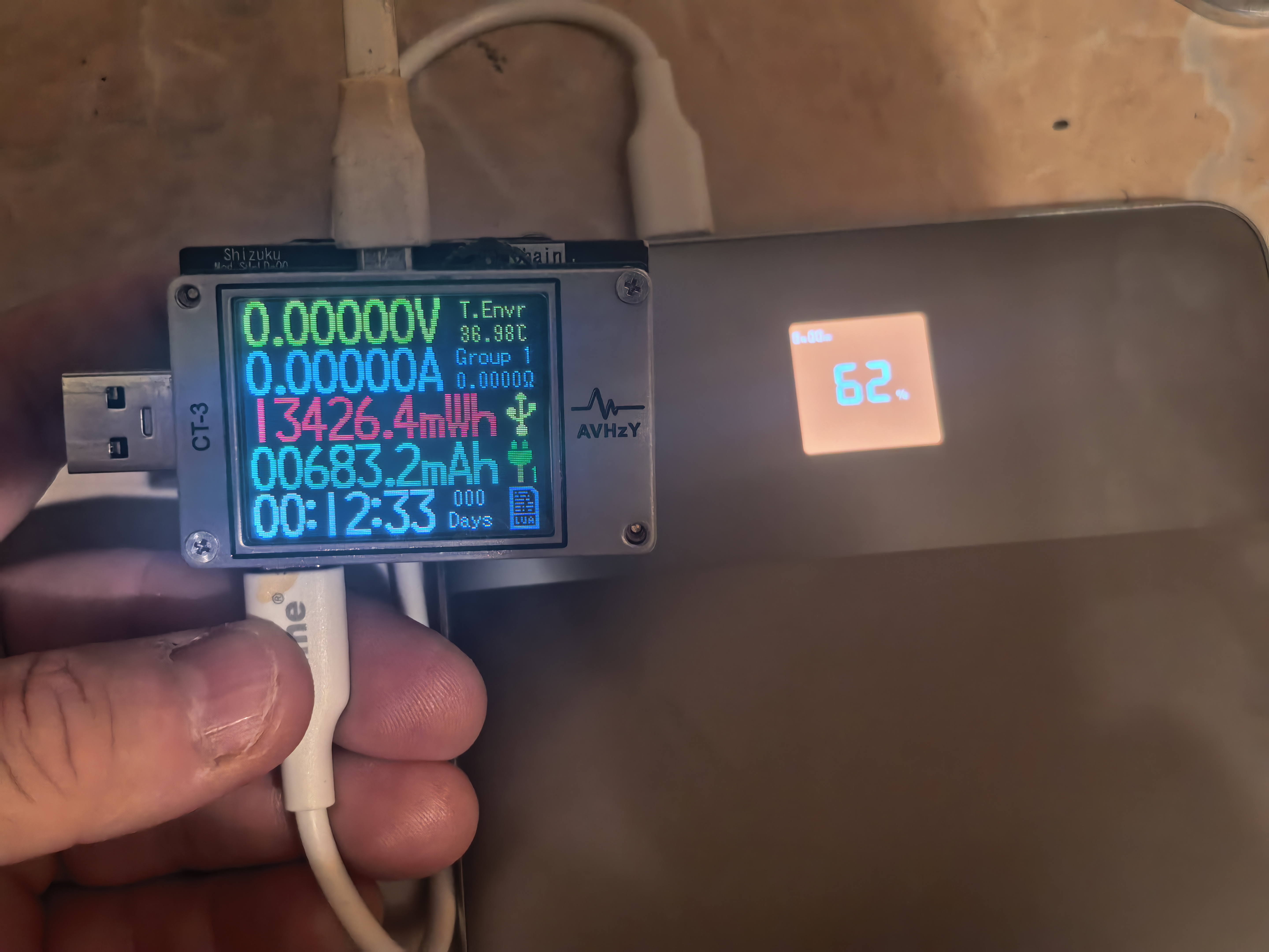 По результатам теста в разделе, стал задумываться, что я делаю не так. Опережу событие, сказав, что из-за большого нагрева разряд на 65Вт обрывался. Когда корпус около порта достигал температуры в 45 и 50 ⁰C, напряжение сбрасывалось. После процесс можно было продолжить,