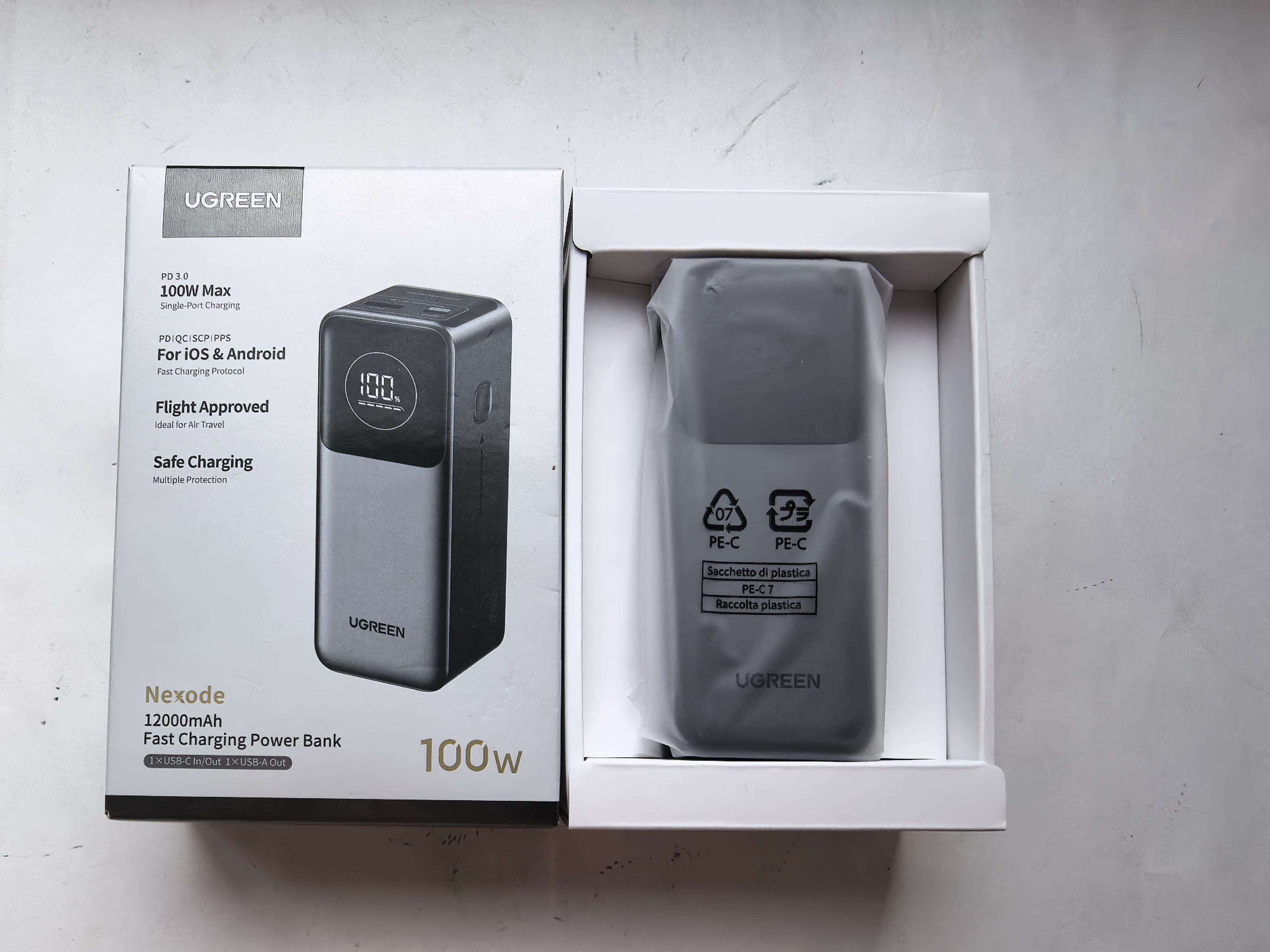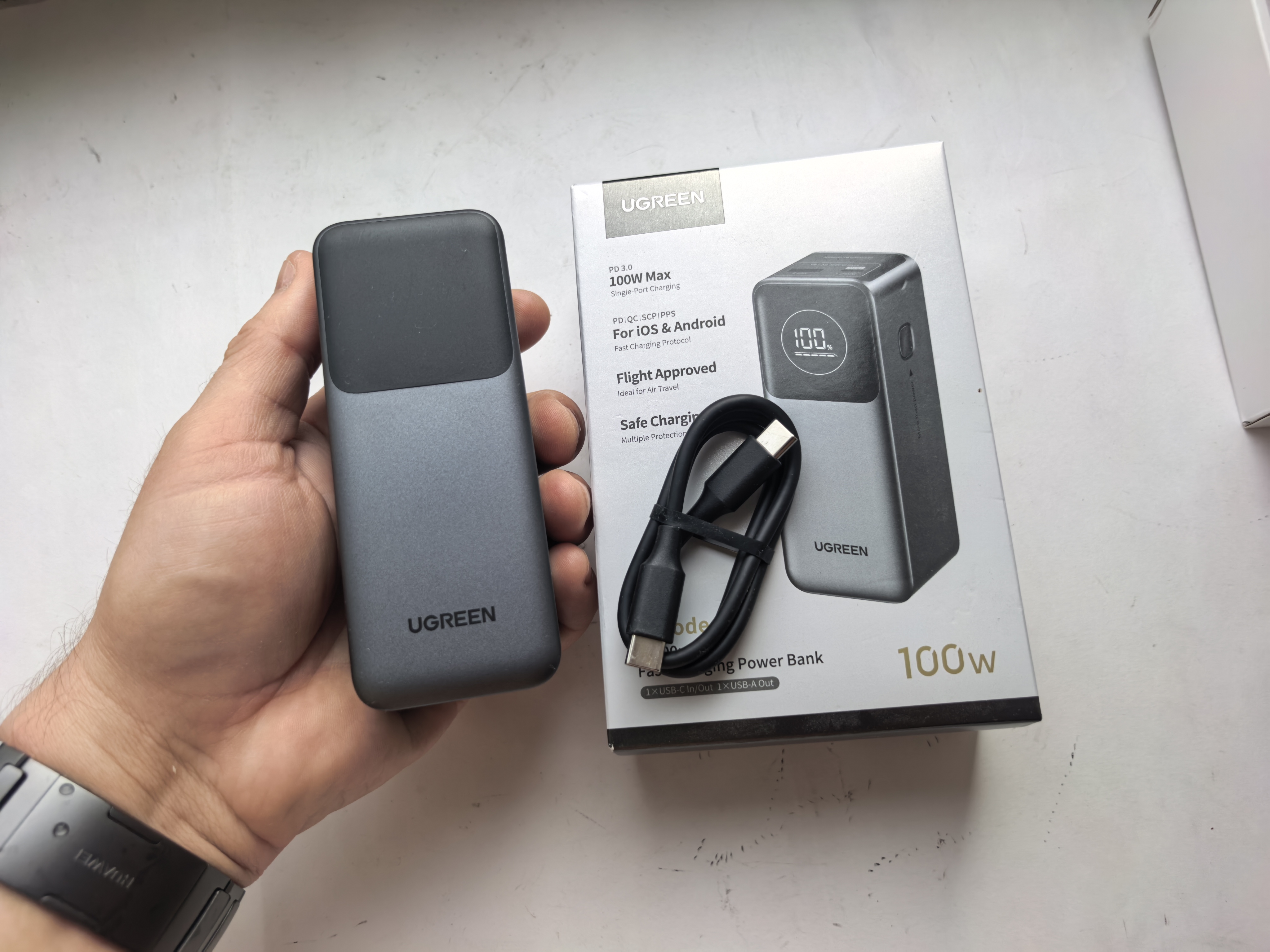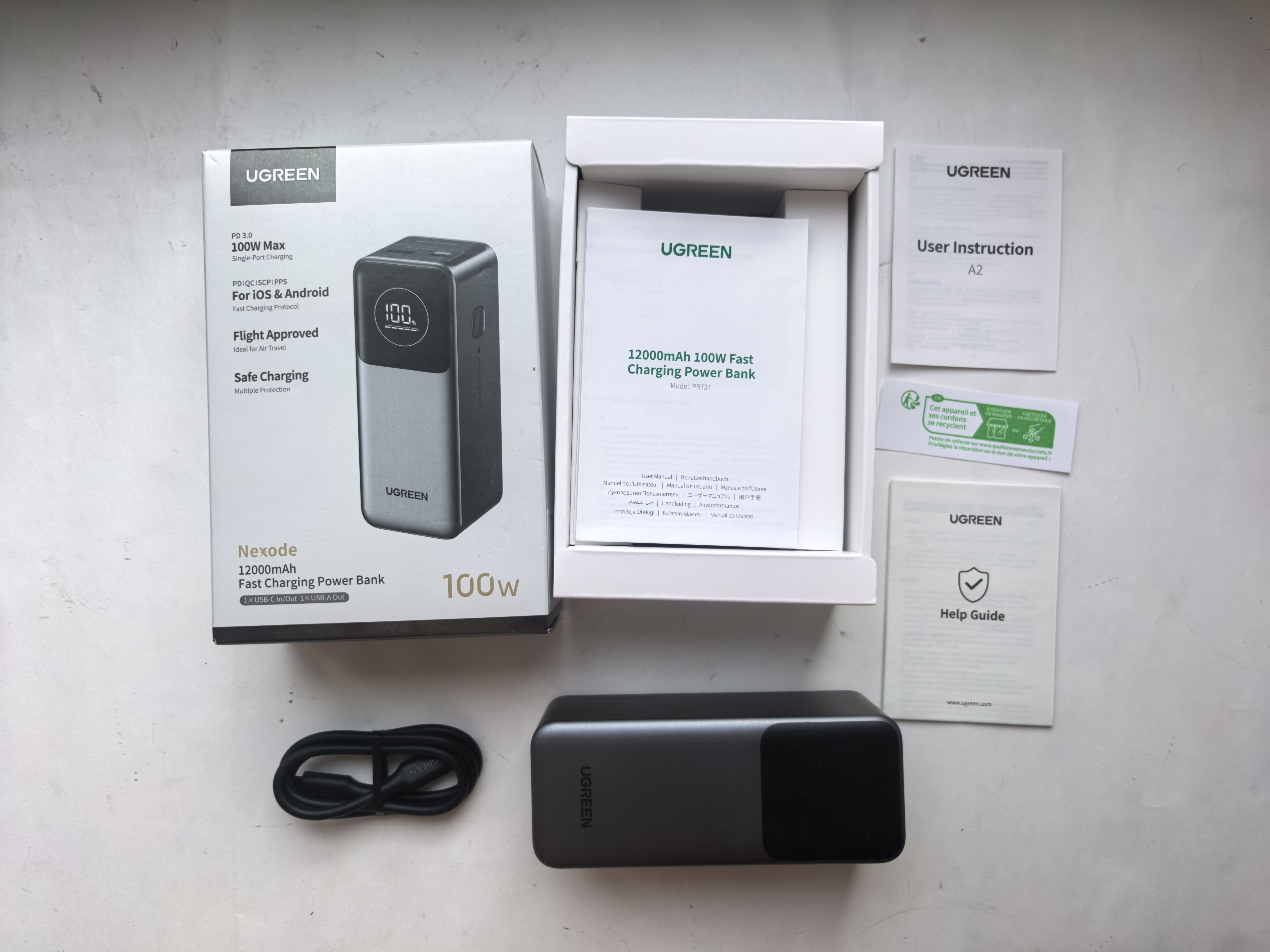 Пока не откроешь коробку, не представляешь, что товар настолько маленький. Я привык, что мощность в 100Вт ассоциируется с чем-то большим и не помещающимся в ладонь. Ugreen PB724 переписал эту привычку.