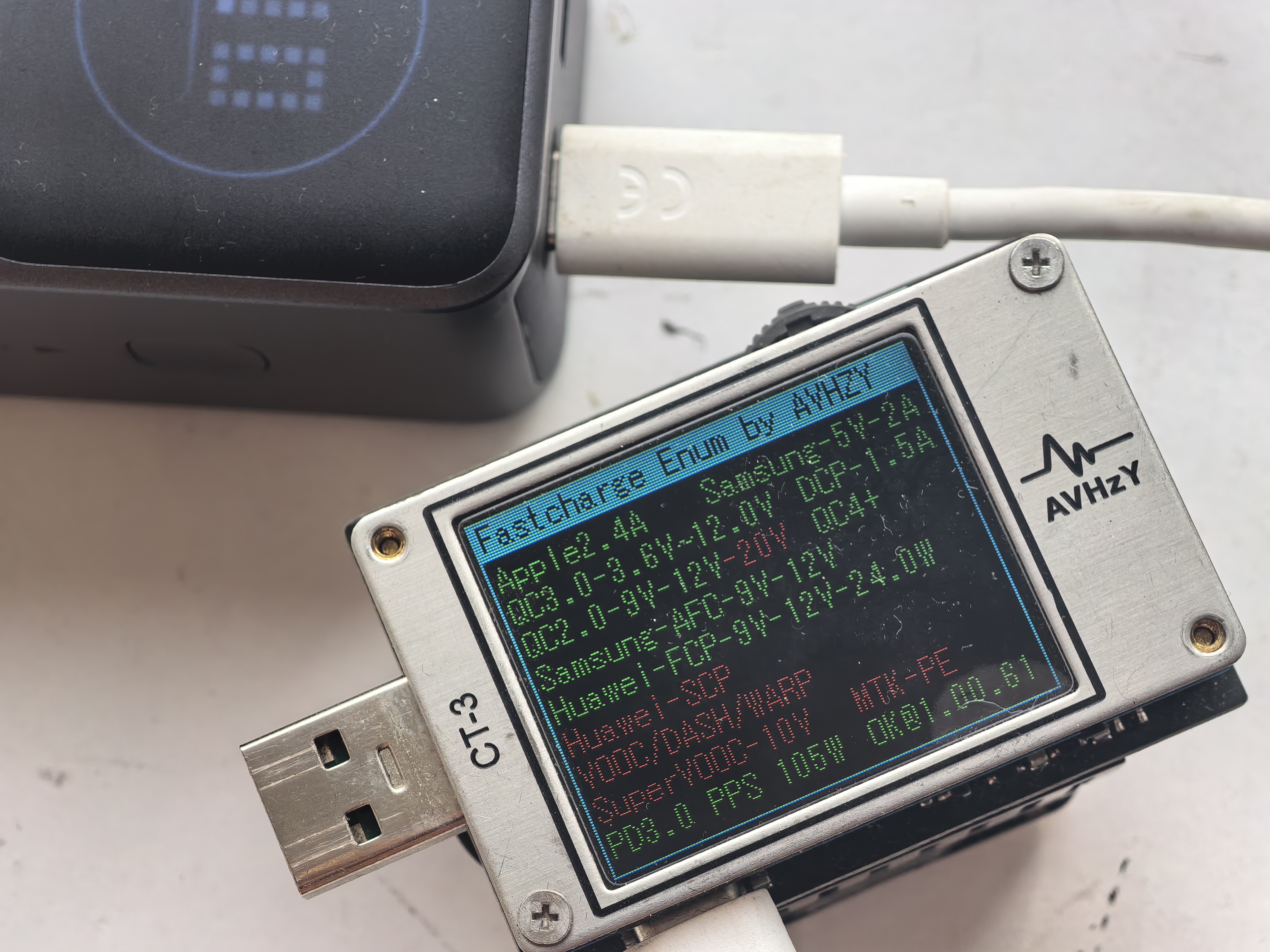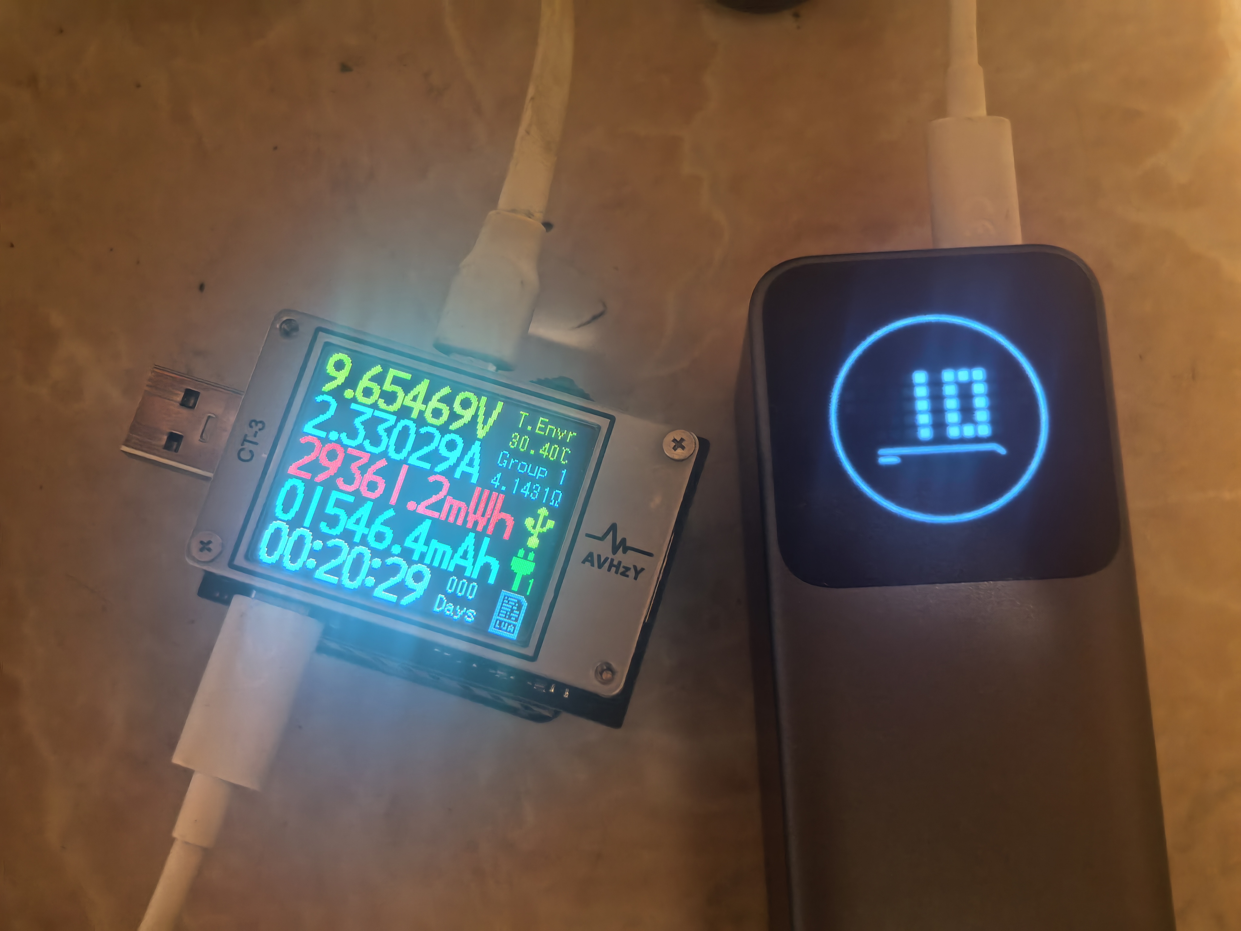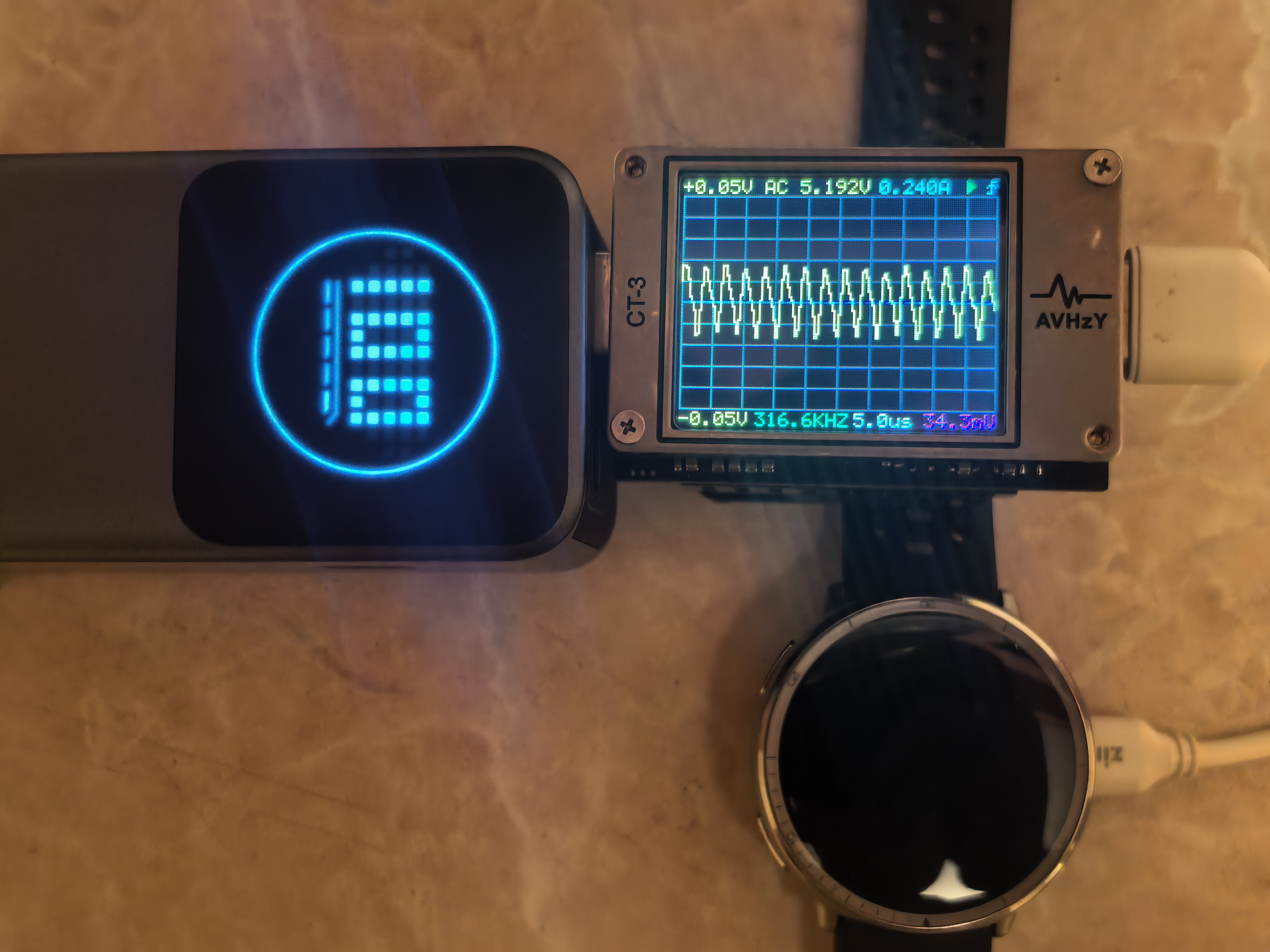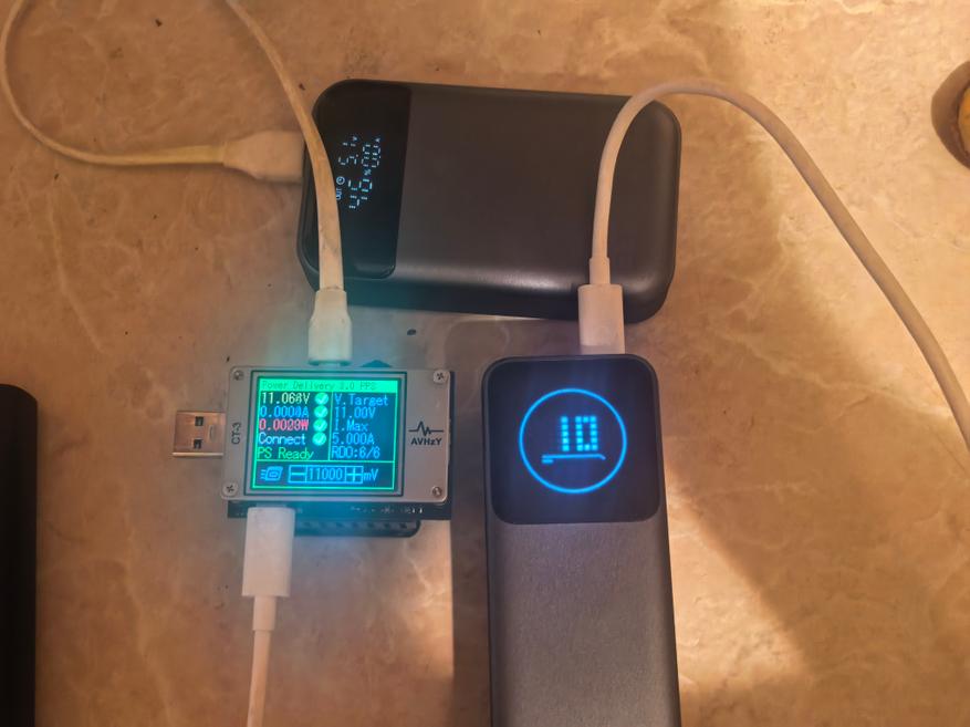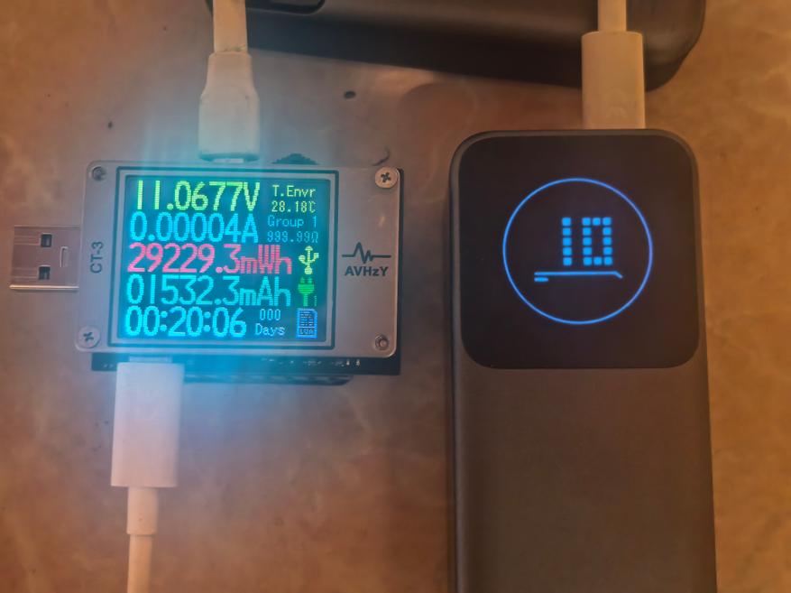 Оценка пульсаций тестером AVHzY CT-3 показала, что их уровень не превышает 1%. В большинстве своем он находится ниже. Через внешний аккумулятор можно без проблем заряжать как что-то мощное, так и носимую электронику.
