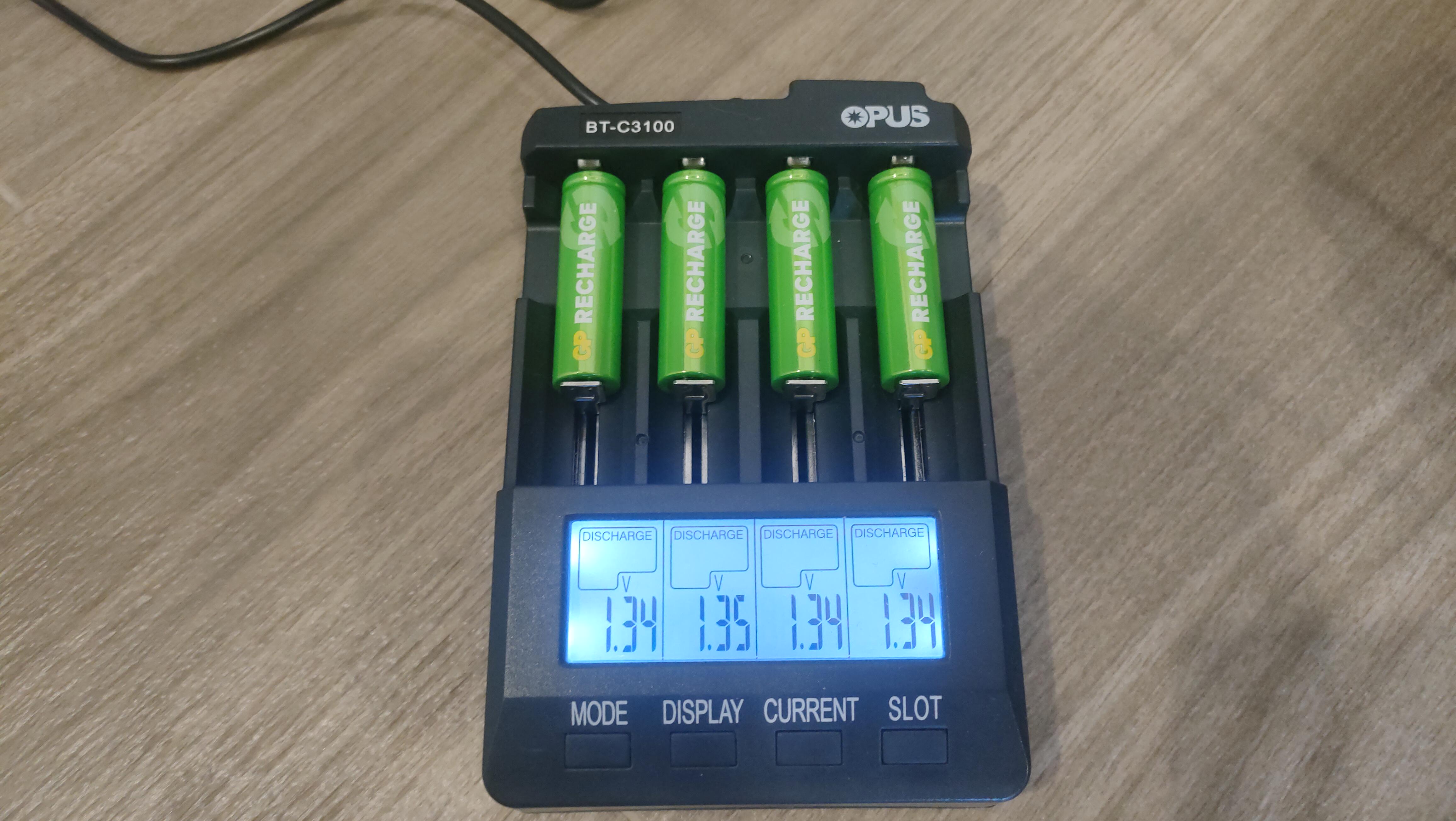 Нагрузить удалось не так много/долго, аккумуляторы очень быстро «сдались», но так вышло, что после этого теста, они стояли в режиме ожидания полтора дня, и напряжение поднялось до 1.34 В. Но дальнейшая череда отключений электроэнергии и последующего включения, вывела зарядное устройство в своё первоначальное состояние, то есть включилась зарядка и я решил прервать тест. Тем более, что третий запуск показал очень небольшую отдачу от аккумуляторов и я решил прекратить издеваться над ними.