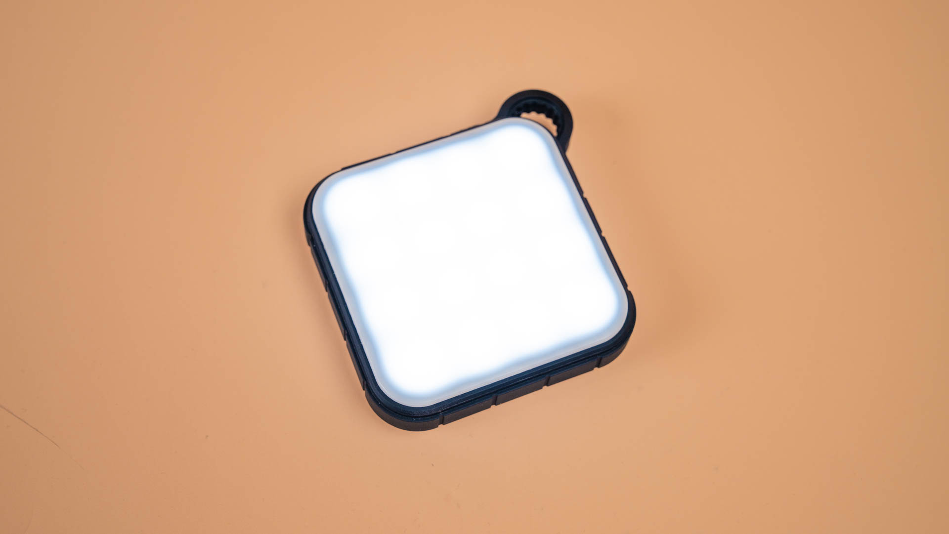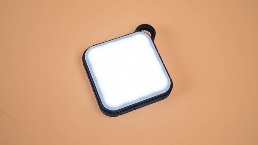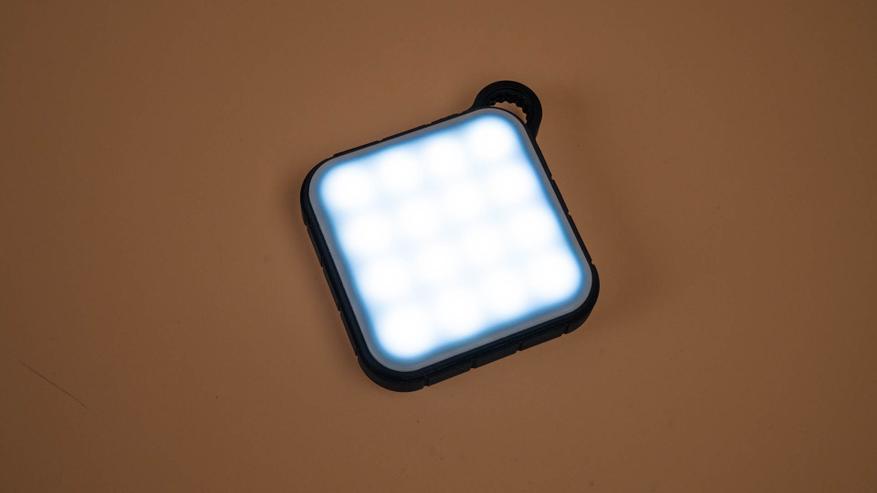 На лицевой стороне корпуса, под полупрозрачным матовым рассеивателем, расположена светодиодная панель из 16 лампочек с максимальной яркостью до 180 люмен.