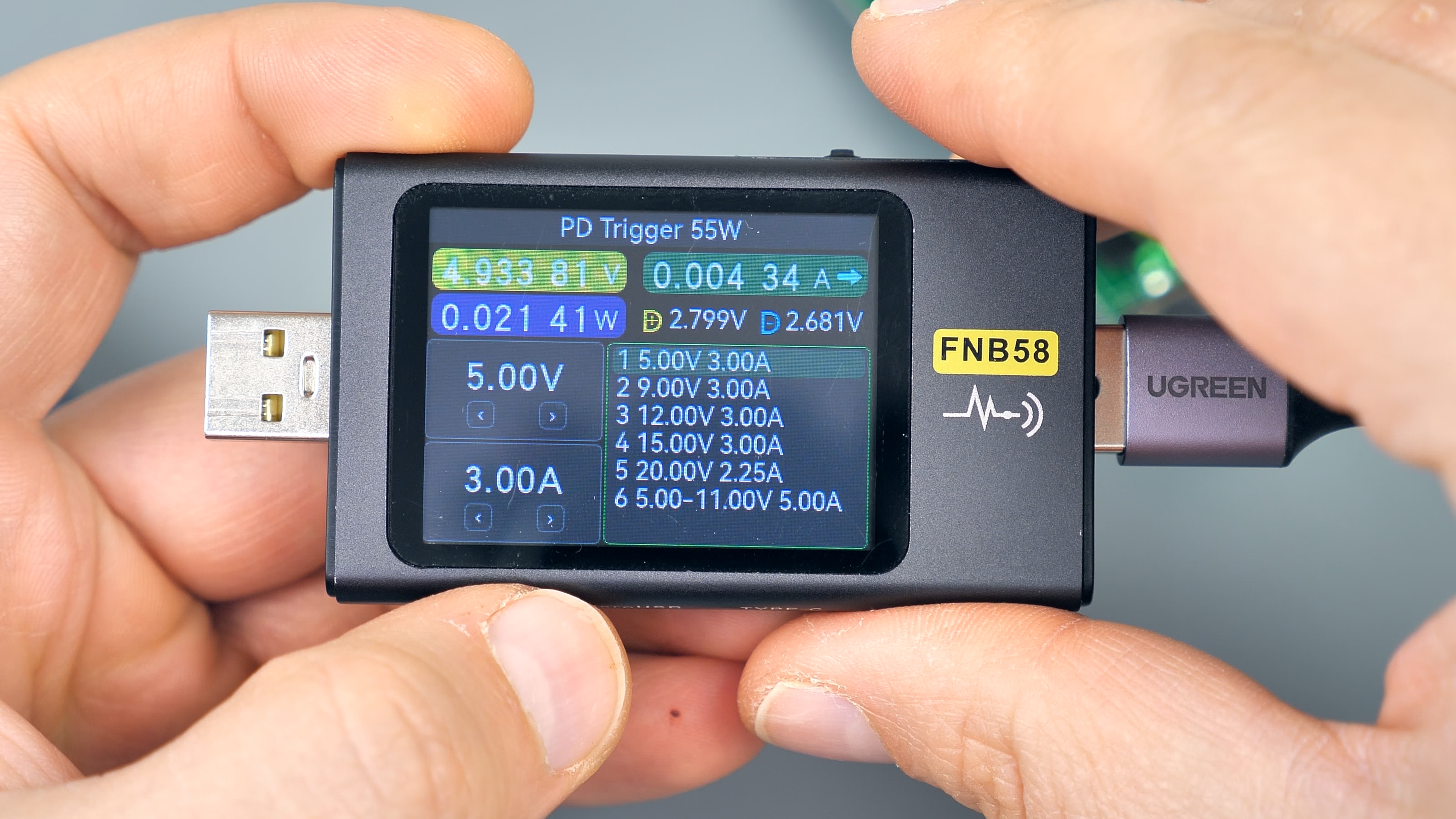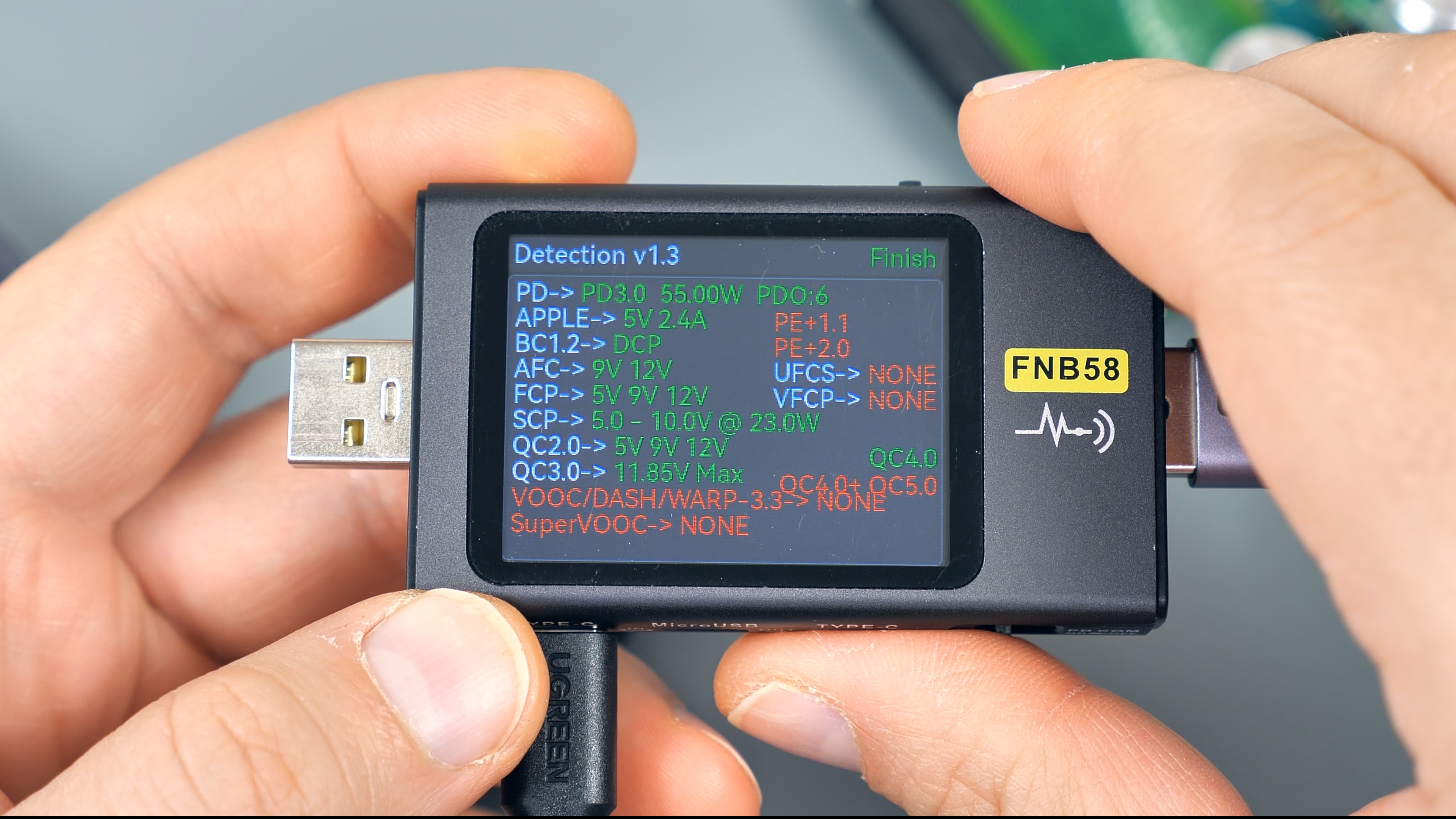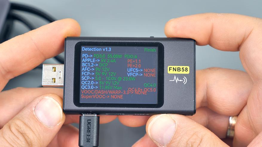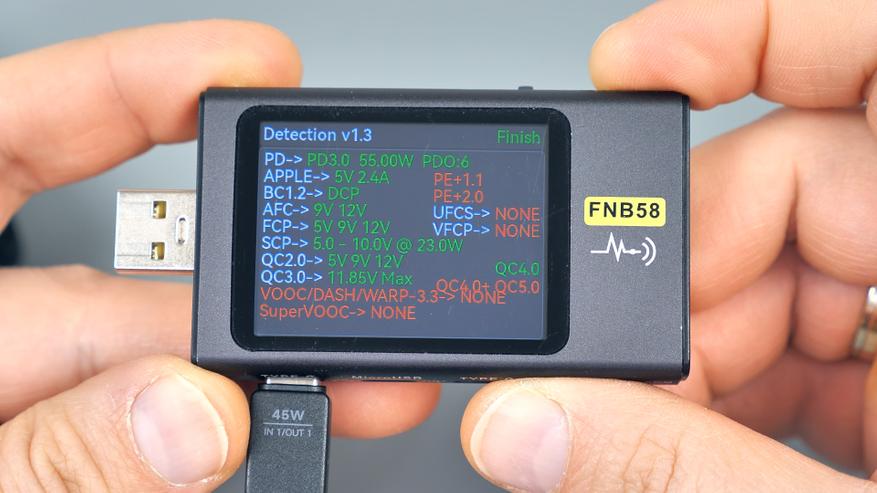 Хотя в режиме PPS сканер отображает поддержку до 55 Вт при напряжении 11 В, фактически порт не достигает этих значений: защита срабатывает при мощности, не превышающей 48 Вт.