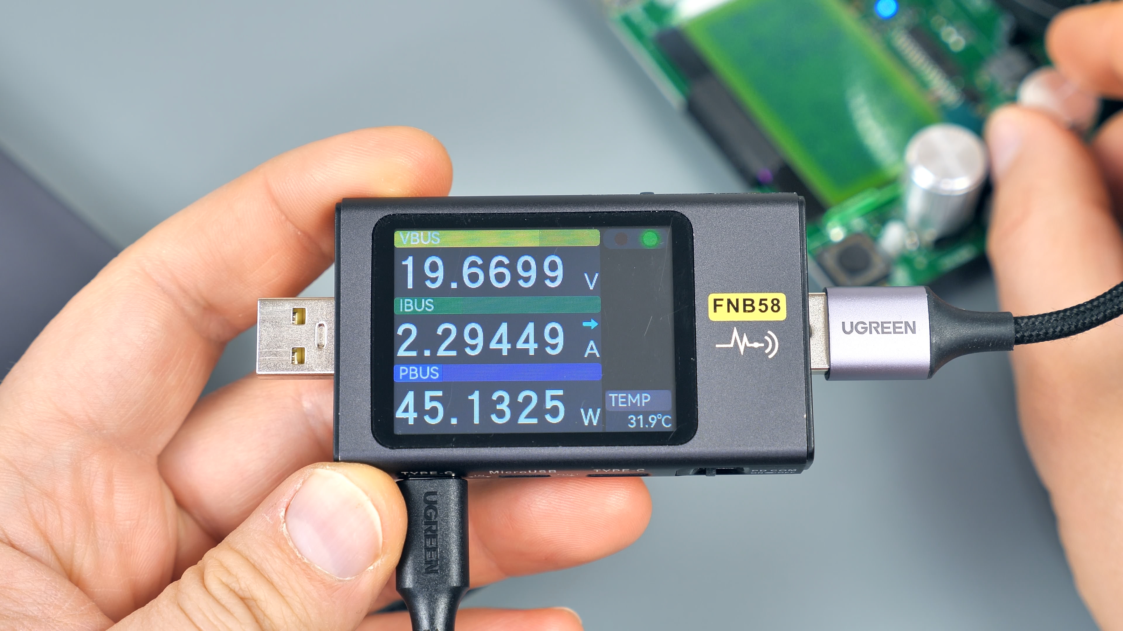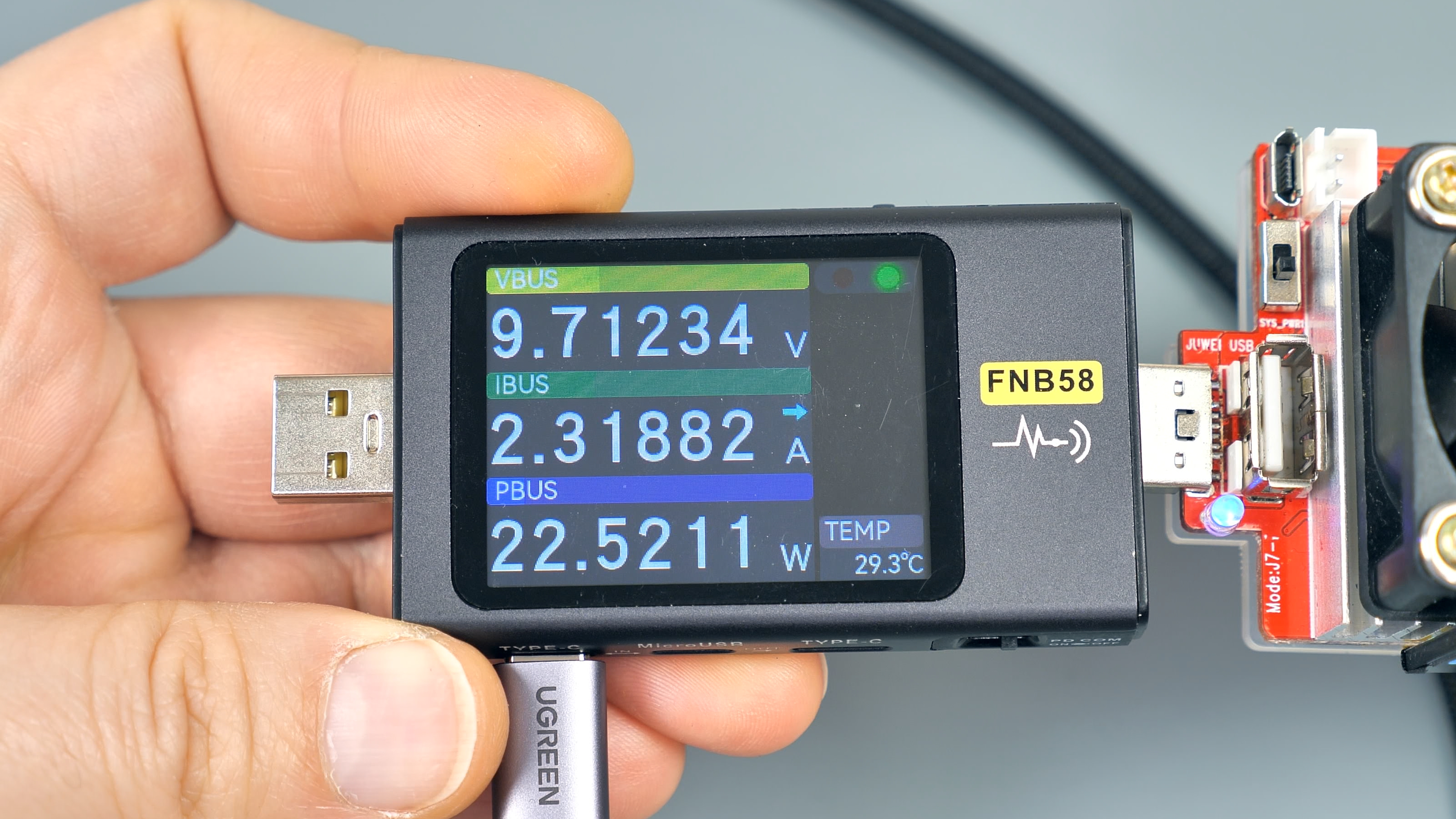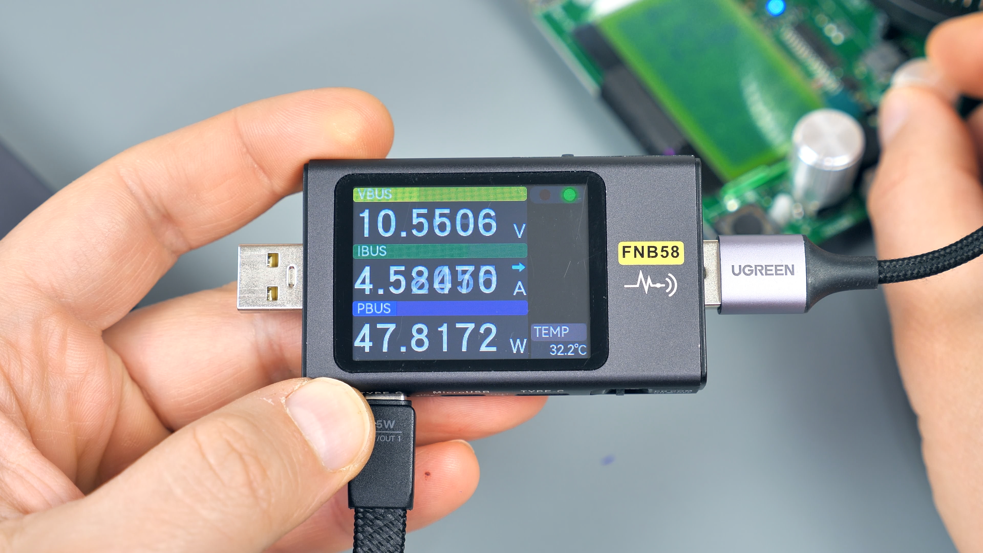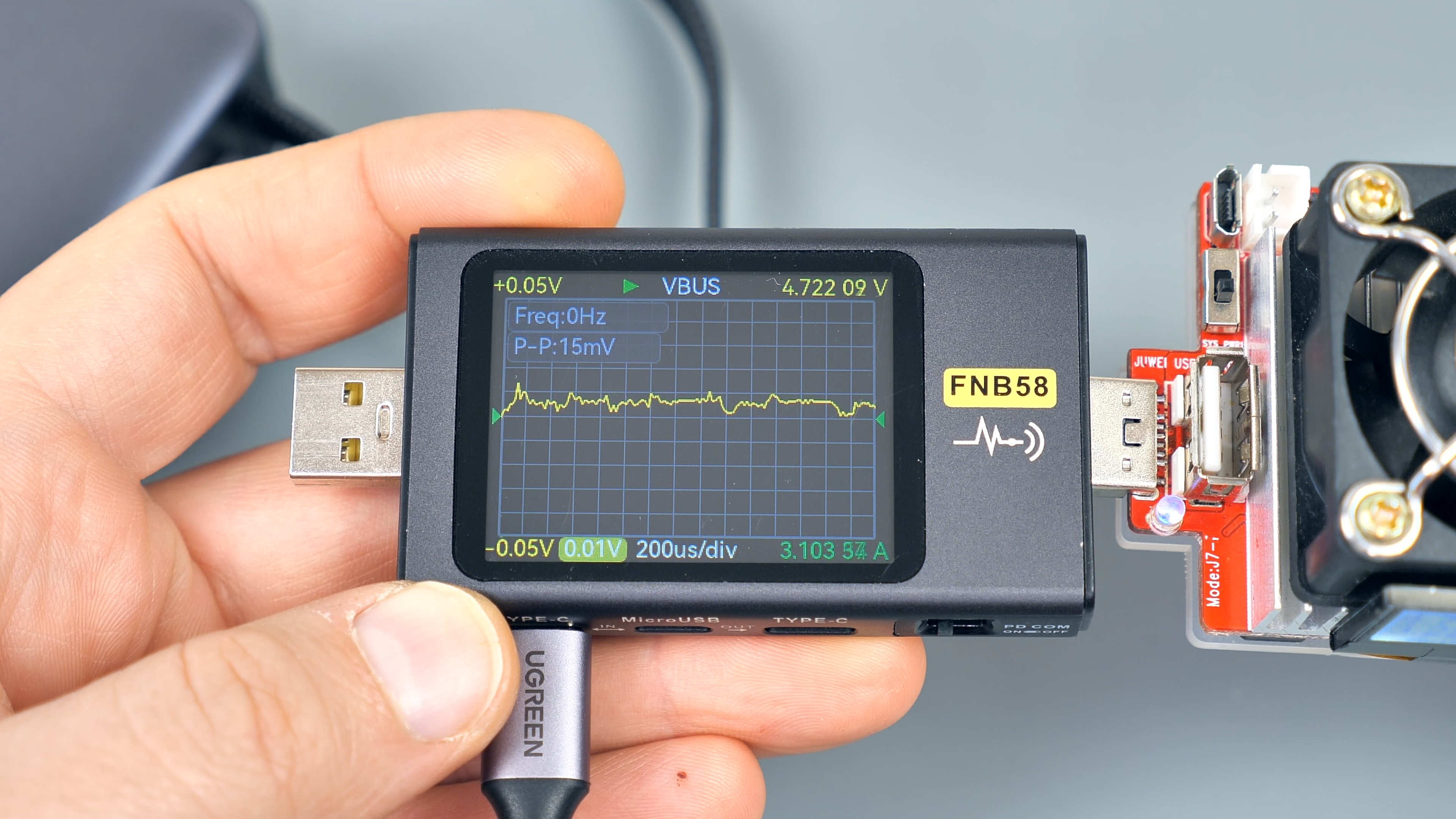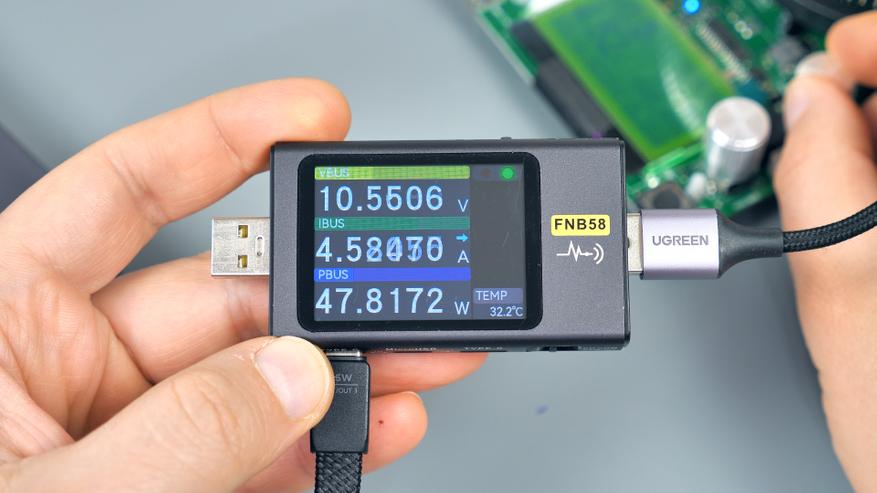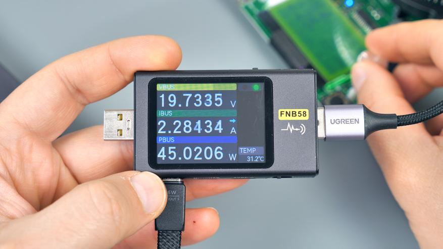 Для тестирования USB‑A‑порта потребуется кабель‑удлинитель: встроенный кабель мешает подключать крупные устройства, например, USB‑тестер. Этот факт важно учитывать — не каждый гаджет можно подключить к порту напрямую без дополнительного кабеля.