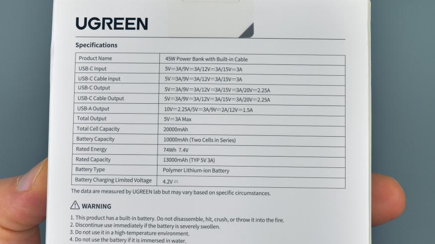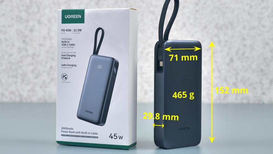 Обзор повербанка UGREEN PB536 Nexode: 20 000 мАч и 45 Вт с встроенным кабелем