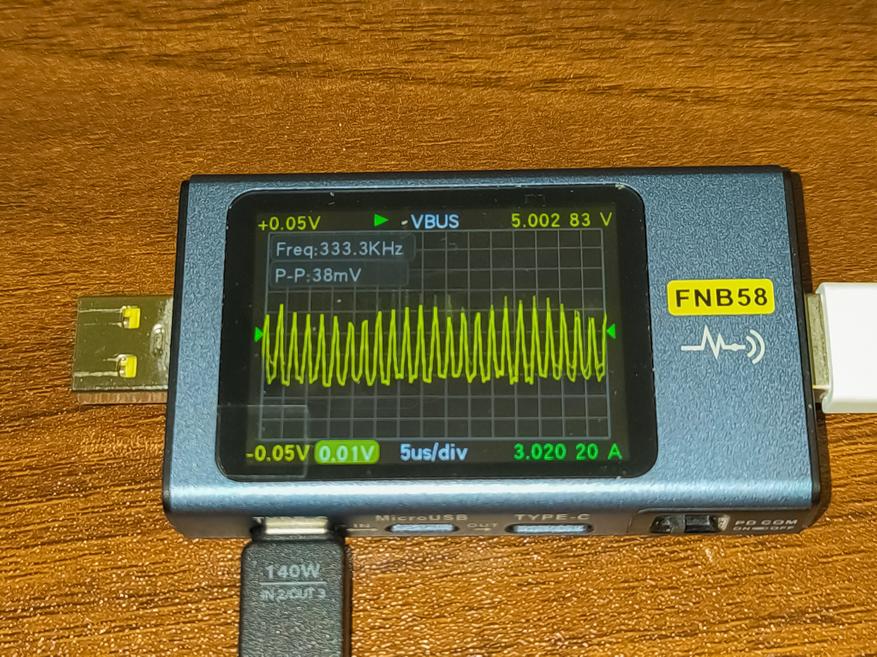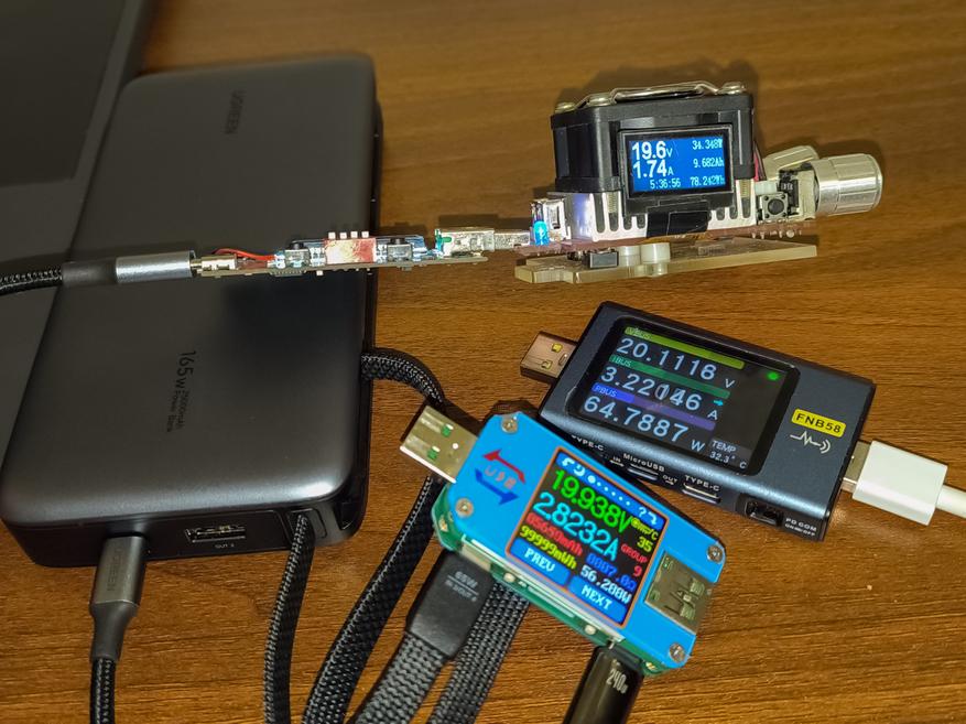 - USB-C Cable 1 + USB-C Cable USB-C + USB-C: 64.78W + 56.20W + 34.34W. Сумарно 155.3W. Порт USB-C был ограничен тестером, который при 35W уходит в защиту.