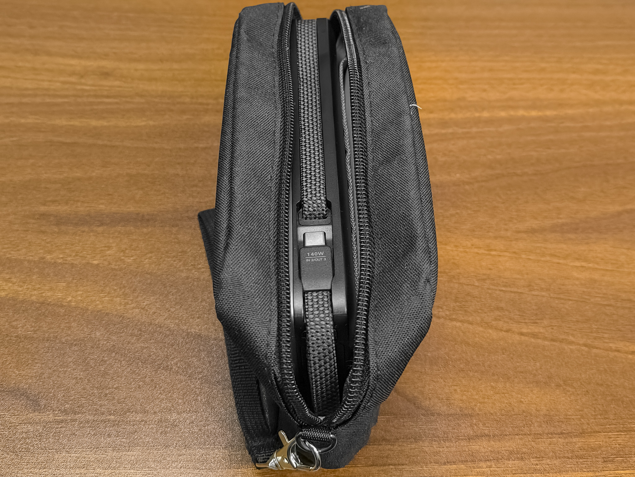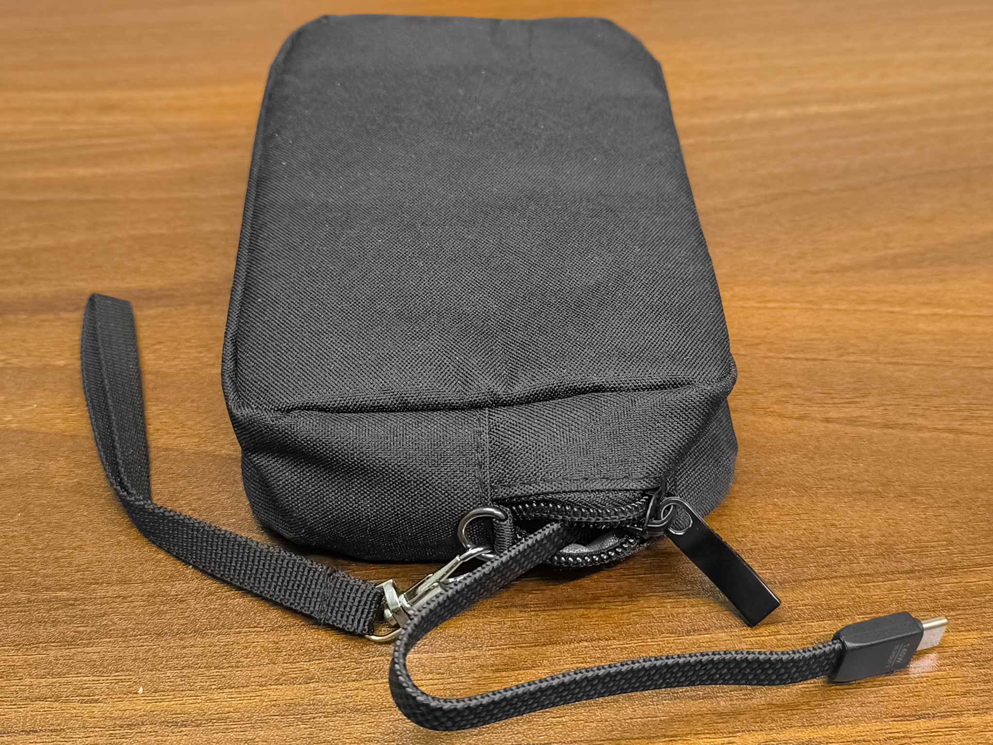 Комплект поставки состоит из внешнего аккумулятора, пятидесятисантиметрового USB-C/USB-C кабеля способного передать 240W мощности, инструкции и гарантийной карты. Мягкий вельветовый чехол, который раньше входил в комплектацию почти всех пауэрбанков Ugreen, на сей раз отсутствует. Для хранения и переноски обозреваемого пауэрбанка я использую вот такой (фото ниже) универсальный чехол.