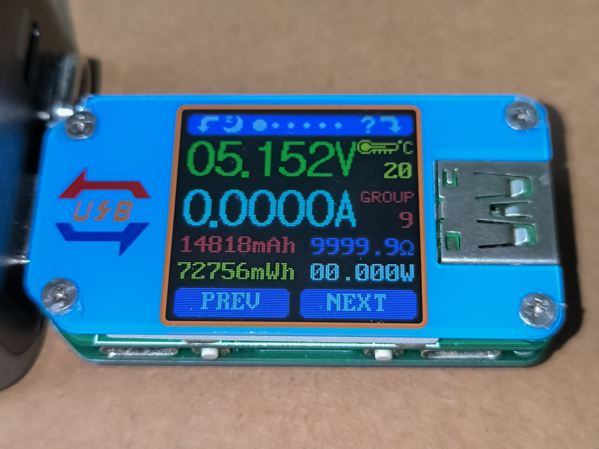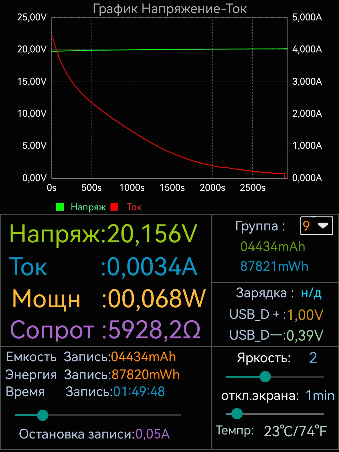 При полной разрядке пауэрбанк отдал 72746mWh.